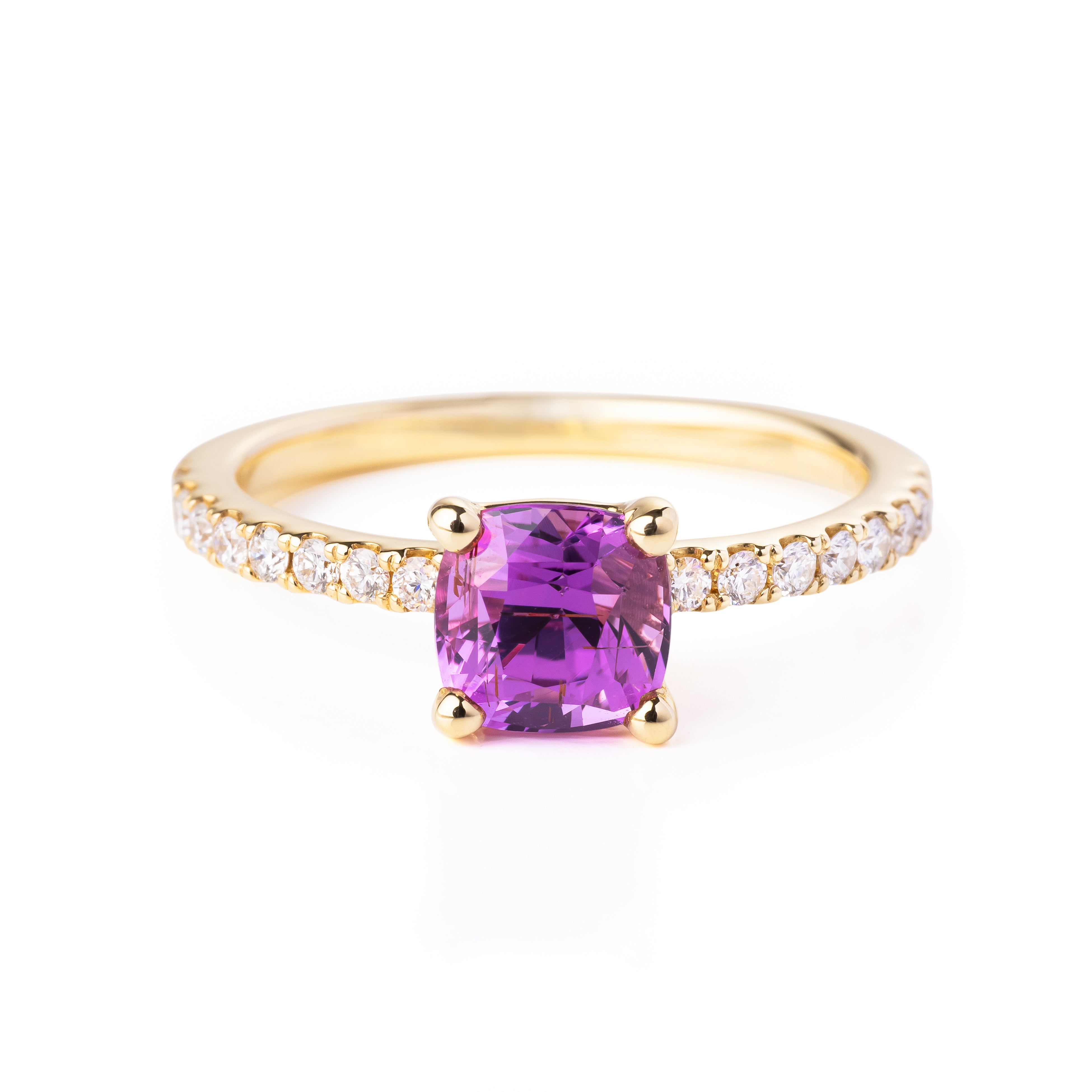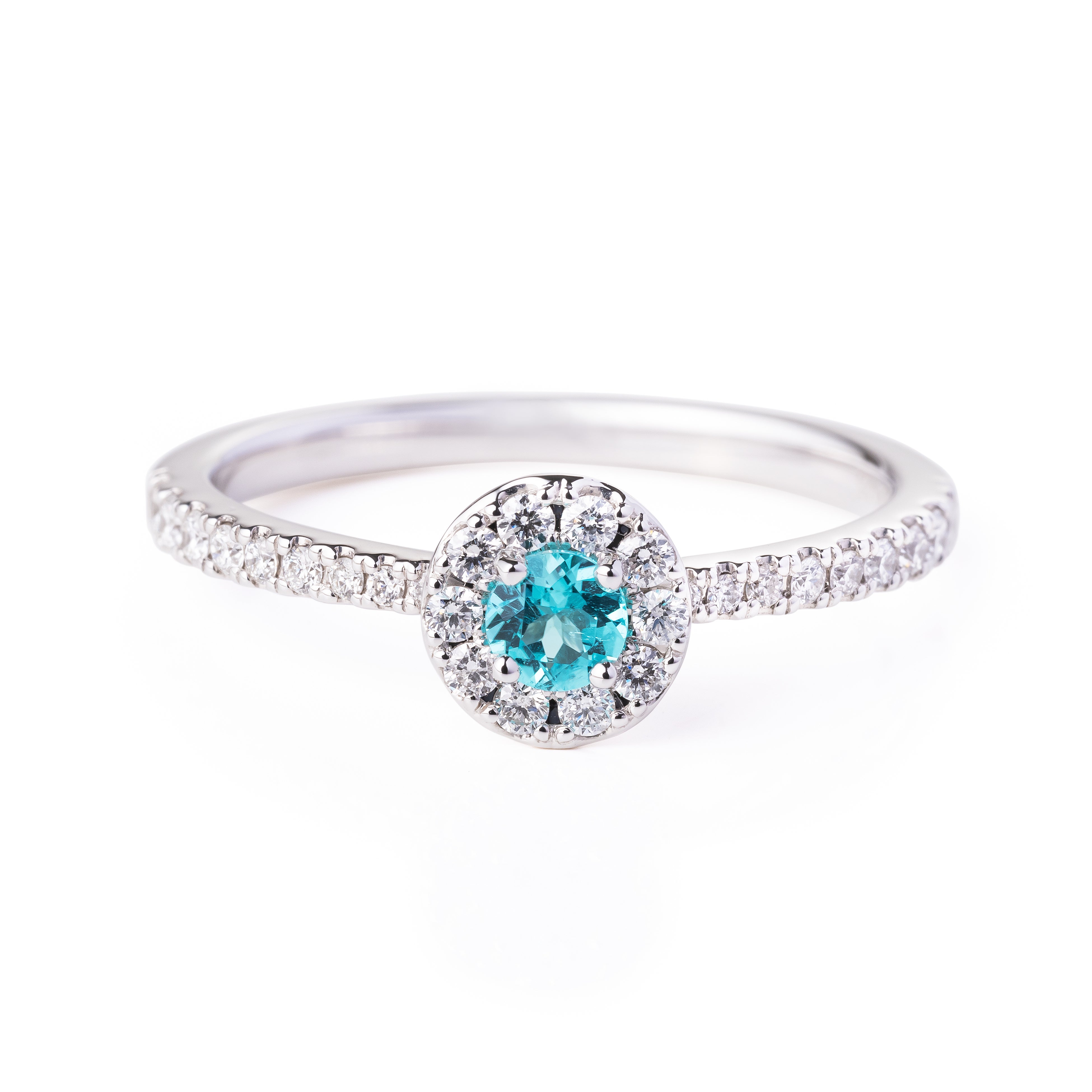 ダイヤモンドで取り巻くことで、センターストーンの色と輝きが一層際立つデザイン。