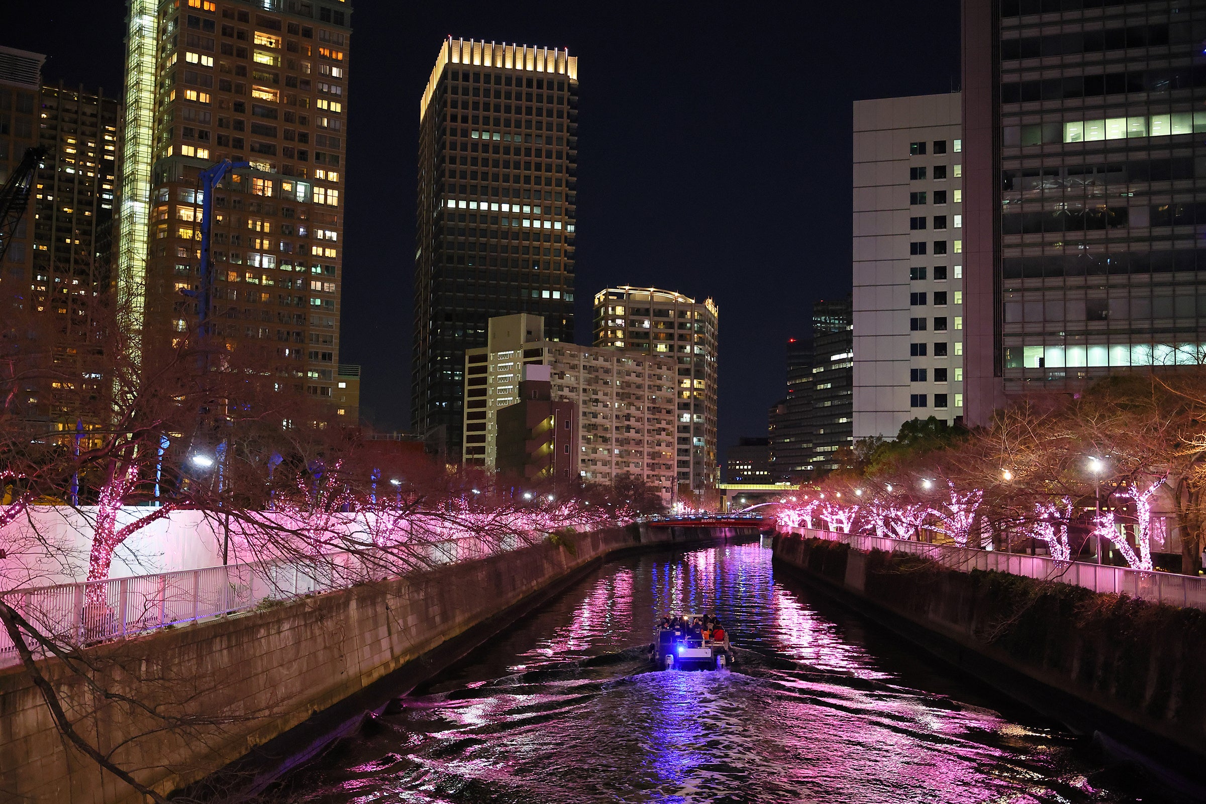 東京都が推進する「TRY舟旅通勤」は、五反田と天王洲を結ぶ航路で、五反田エリアからの新しい通勤スタイルとして注目を集めています。今年は、五反田リバーステーションにもLEDが装飾され、仕事帰りに舟旅通勤を利用する方々は、光に包まれた目黒川の美しい景色を船上からゆったりと楽しむことができます。