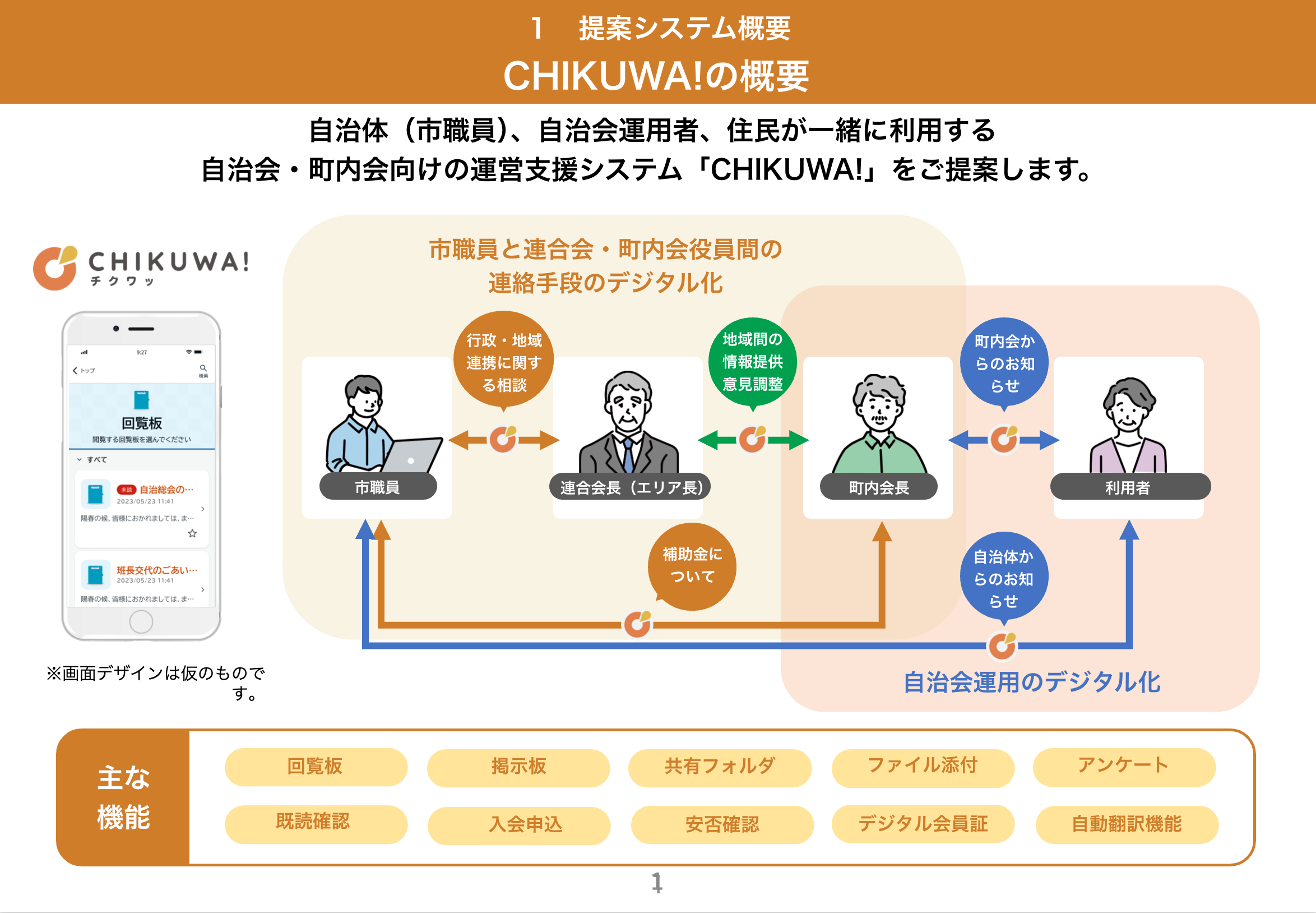 「CHIKUWA!」は、自治会・町内会運営のデジタル化をサポートするサービスです。