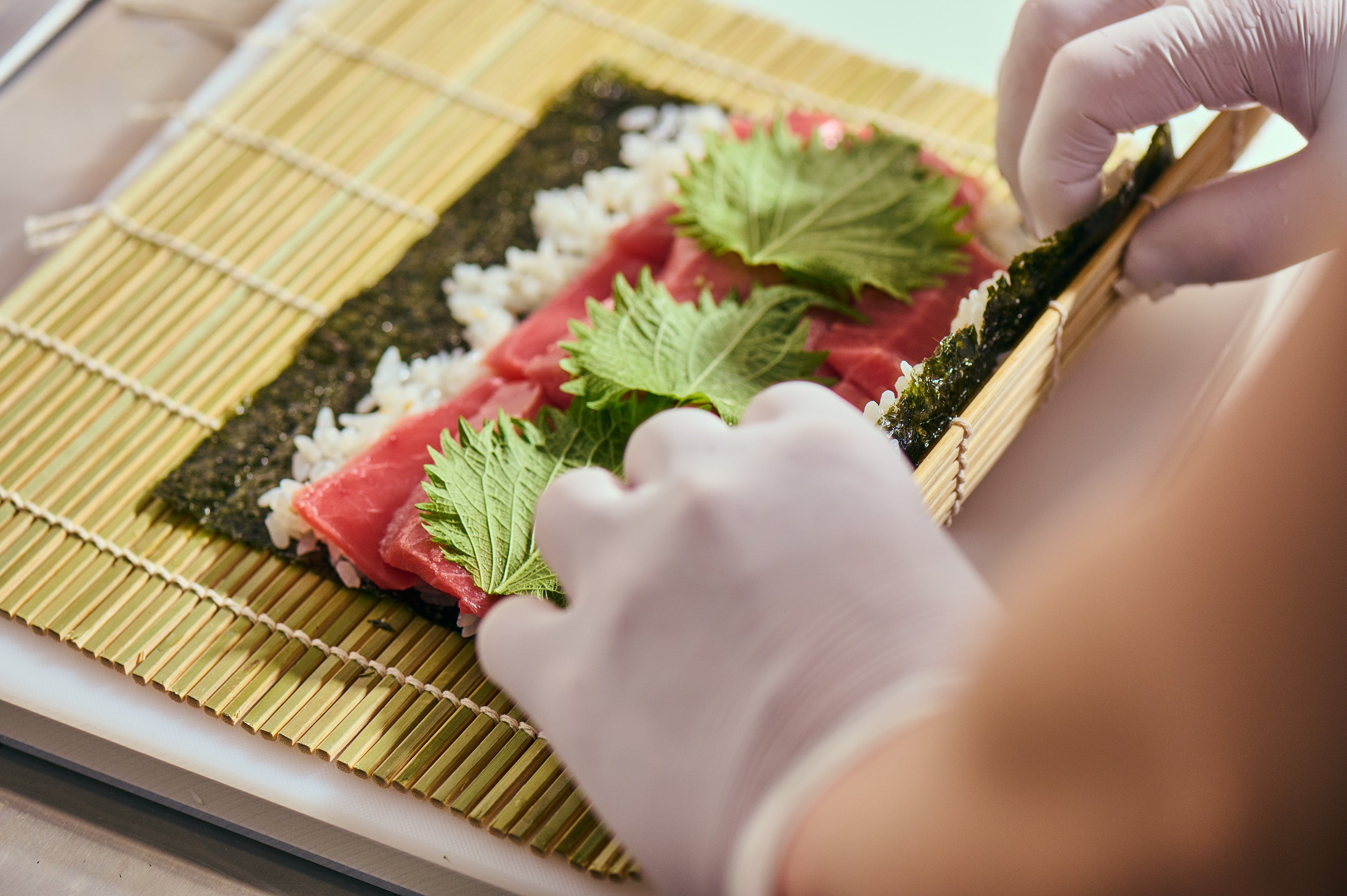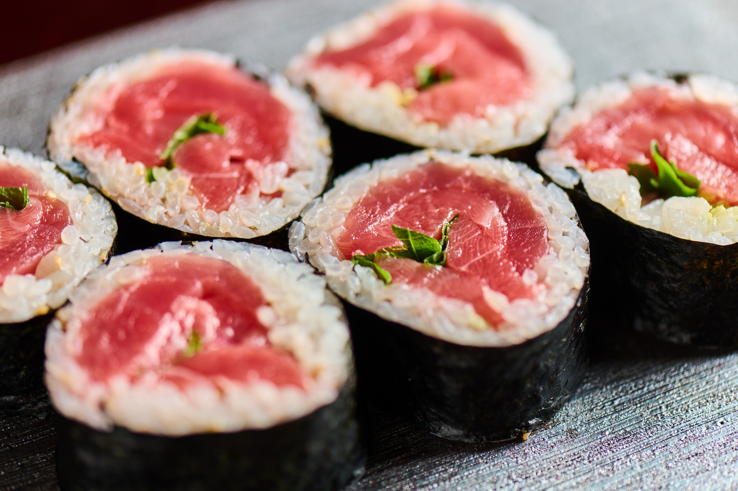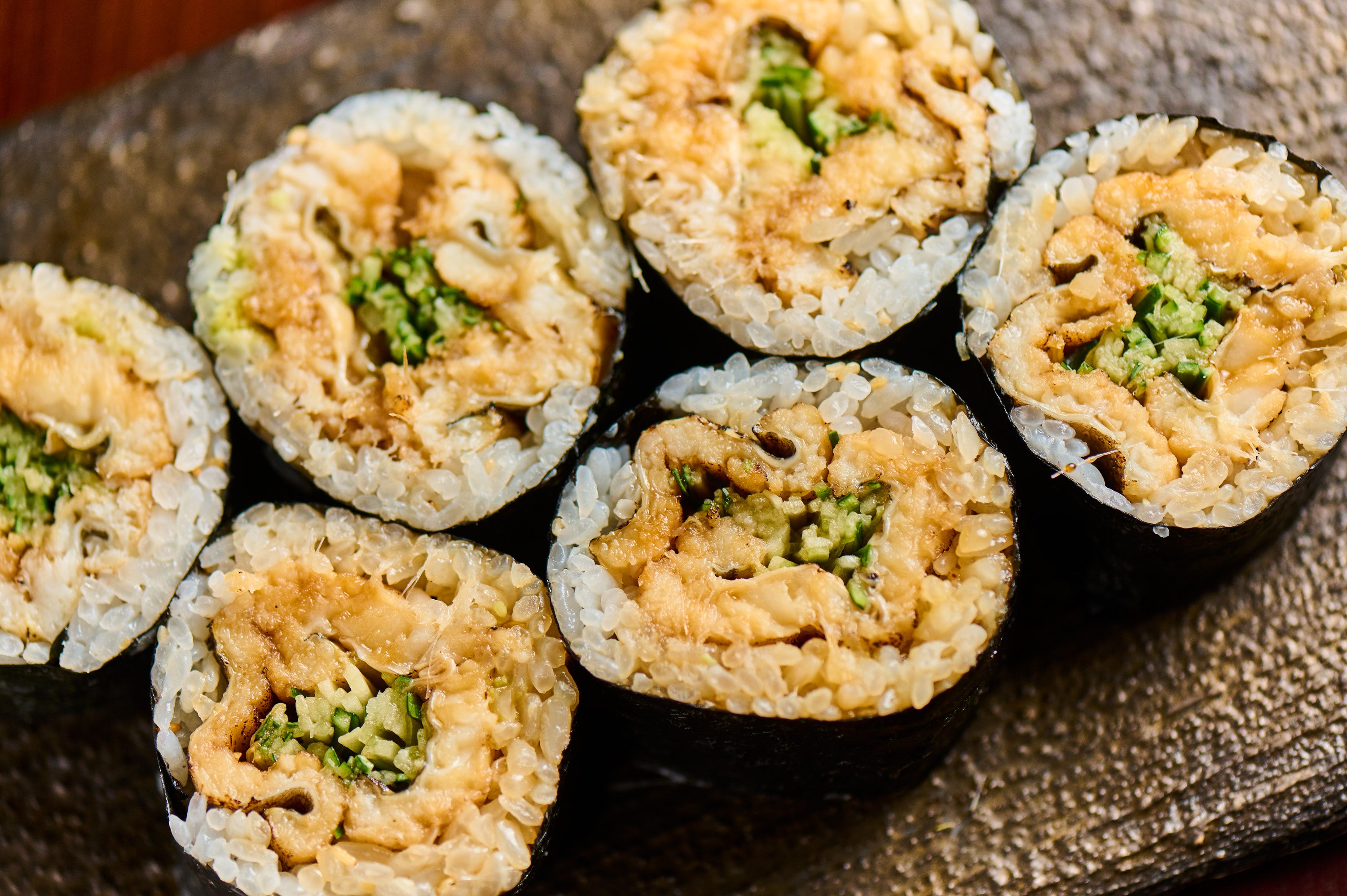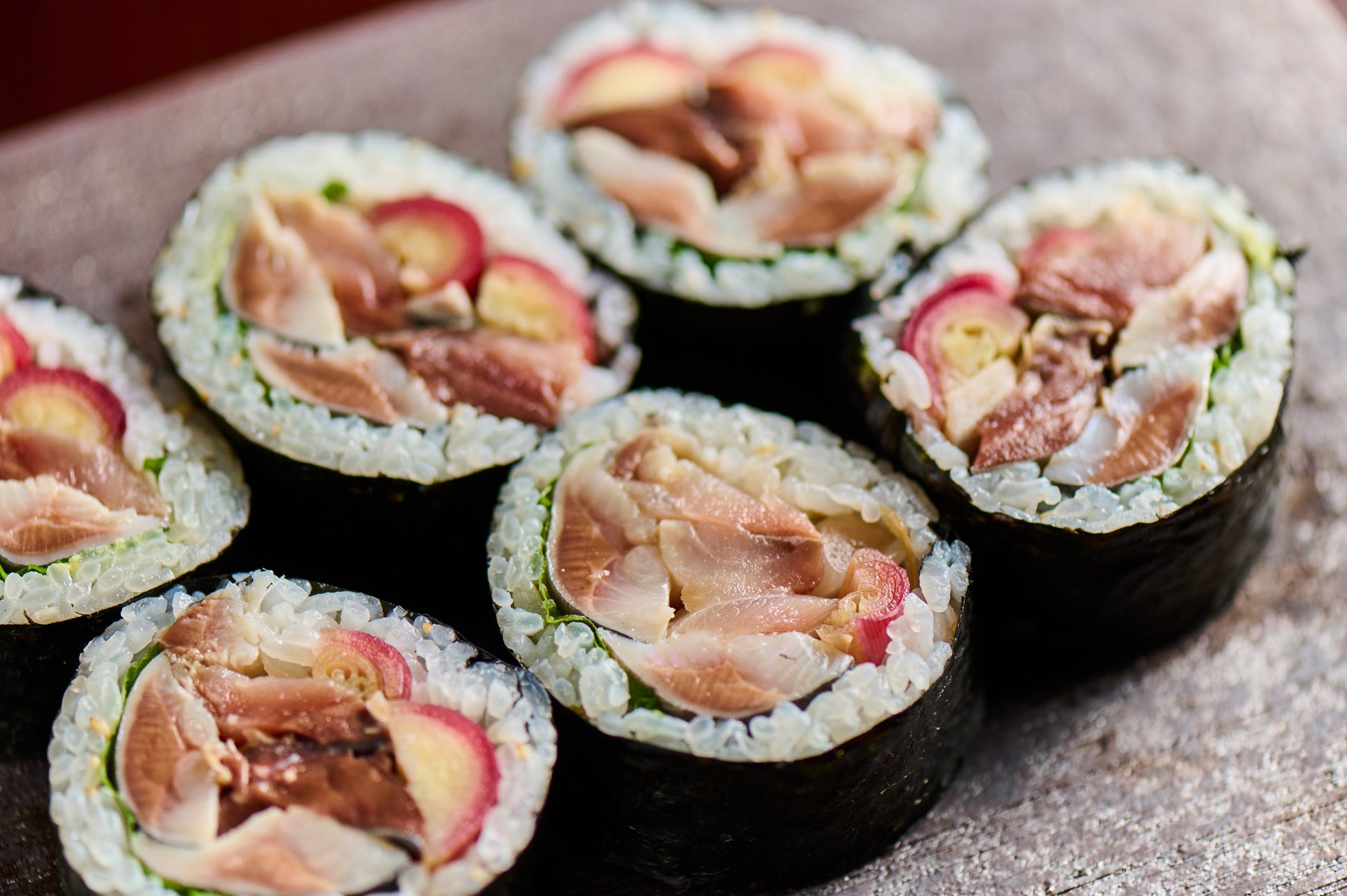 〆には、ぎっしり具沢山の太巻きを提案。鮪、穴子、鯖と鰯の王道3種類をご用意。食べ応え抜群の太巻きは、お土産としてテイクアウトも可能。