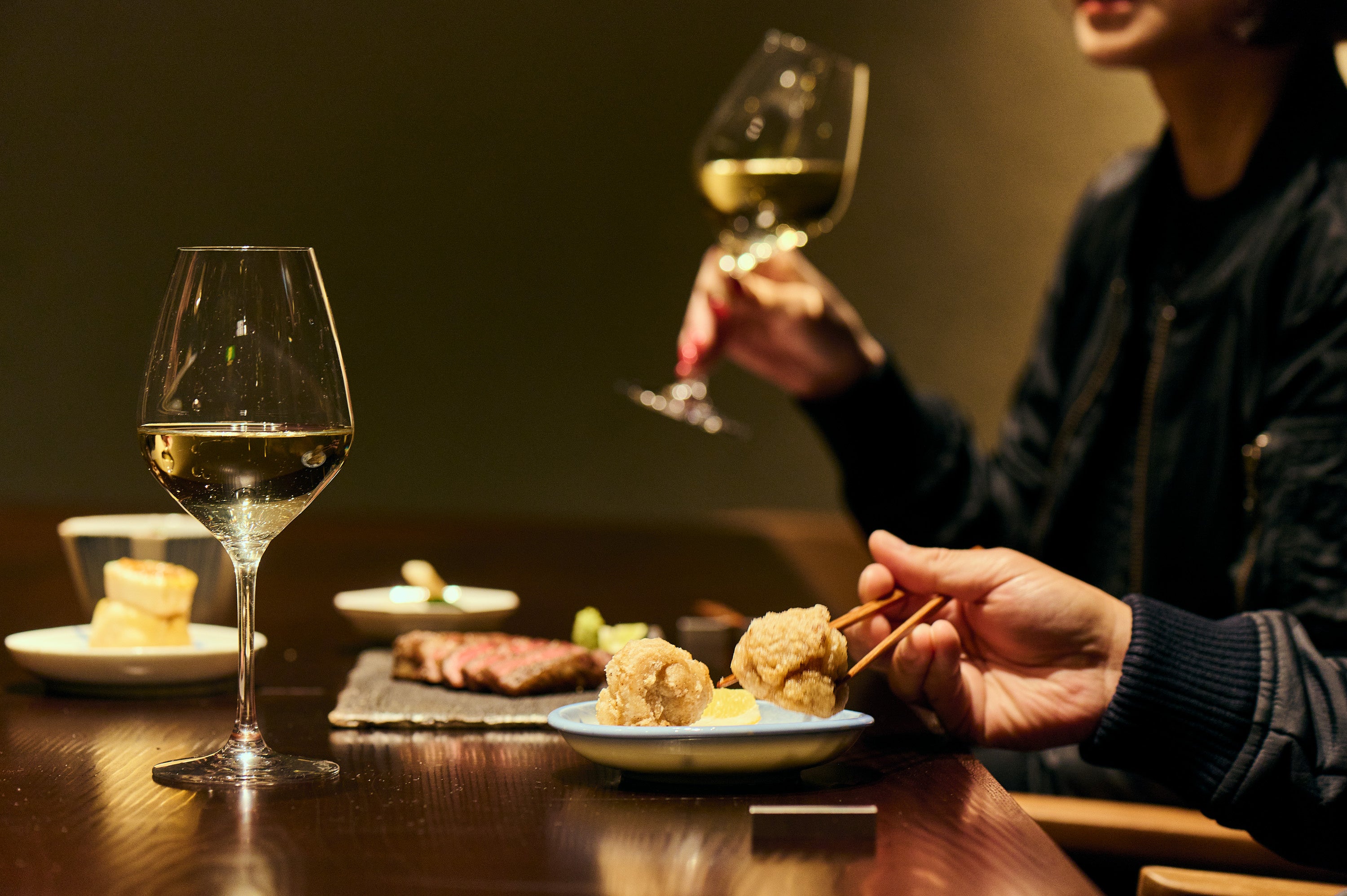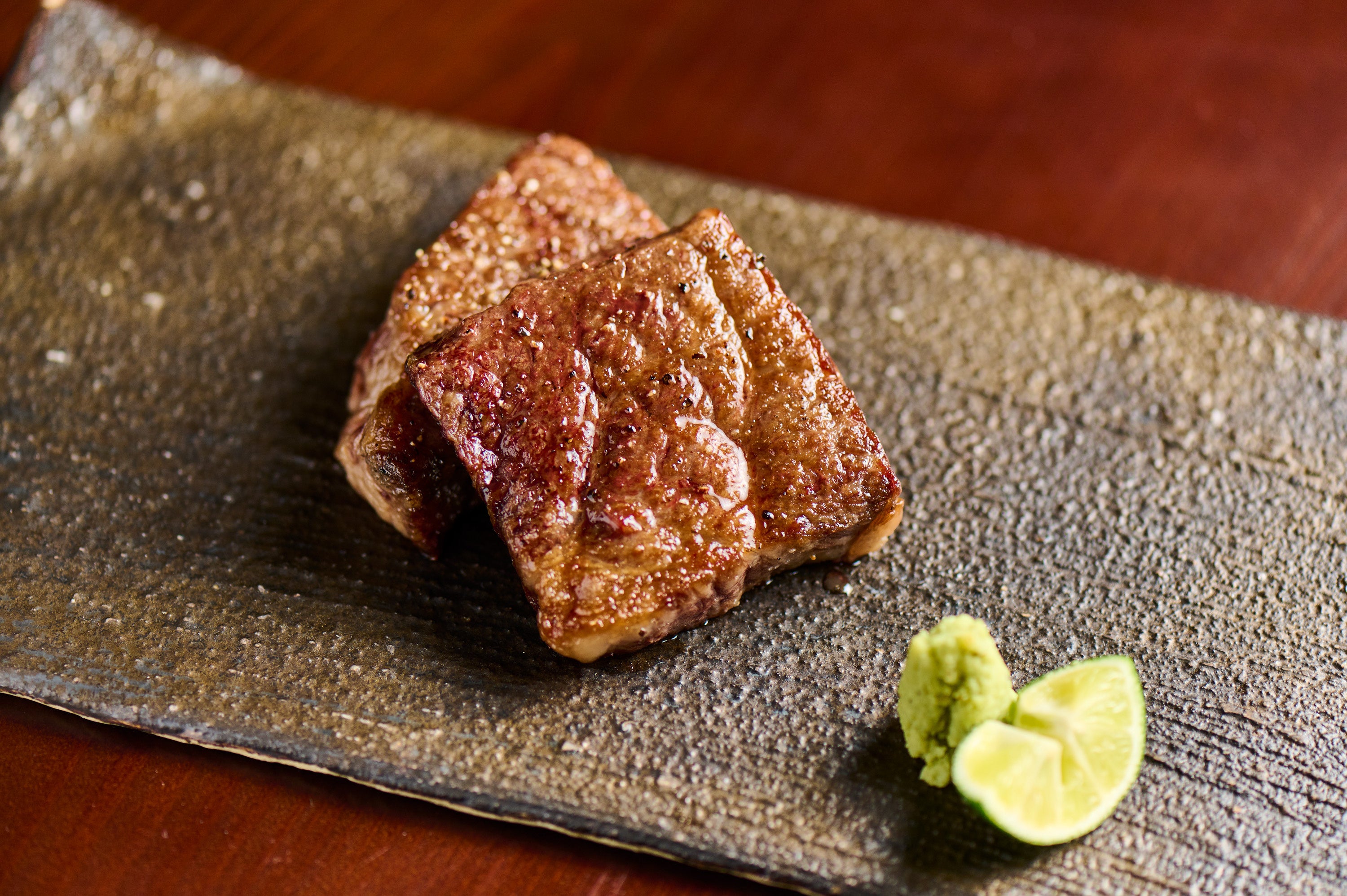 厳選した黒毛和牛を使用したステーキを中心とした肉料理と純米酒&ナチュラルワインを楽しめるお店。雑居ビル2階という、隠れ家的な装いの店内には、開放的なカウンターと半個室をご用意。