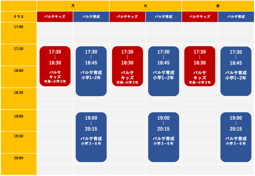 ≪バルサ育成クラス・バルサキッズクラス時間割≫