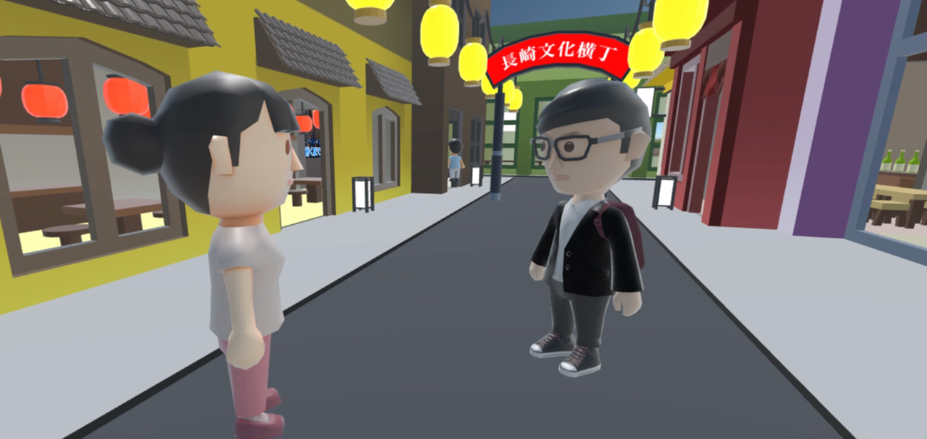 コロナ禍で全国的にリアルイベントの開催が難しくなっている状況が続く中、VRを含む非対面で地元飲食店の商品を紹介したいと考え、NCCが2020年2月開催に開催した、「長崎文化横丁」(※)のバーチャル版をIICの技術で構築しました。参加企業の商品が並ぶVR空間にパソコンやスマートフォンでアプリを使わずに入室でき、ショッピングが楽しめます。また横丁のように交流を深める場にもなればとの思いから、参加者同士で会話をする機能もあります。最先端のメタバースを是非ご体感ください。