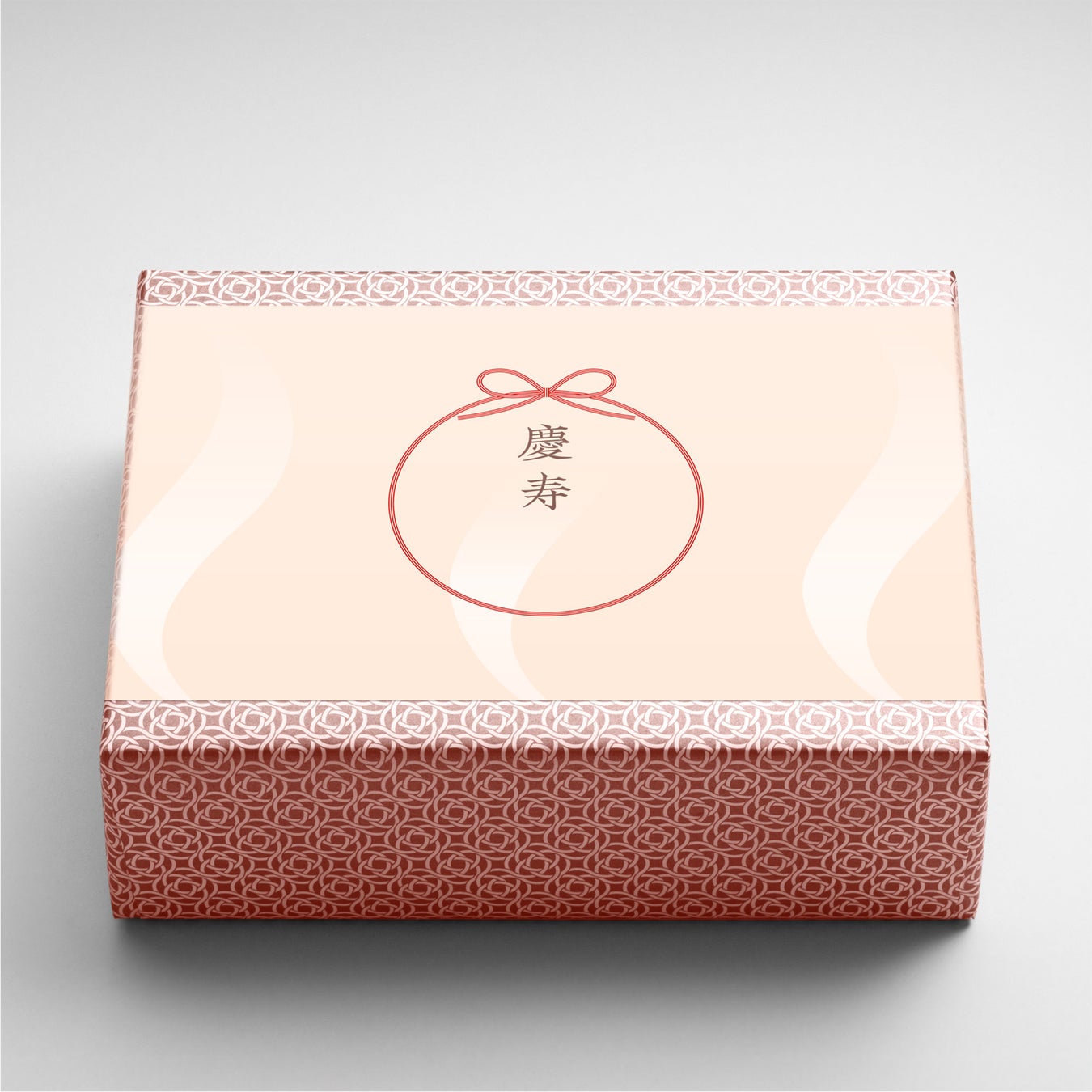 真ん中には「慶寿」の文字と温かみのある水引を配し、長寿を祝う気持ちと日頃の感謝を伝えます。