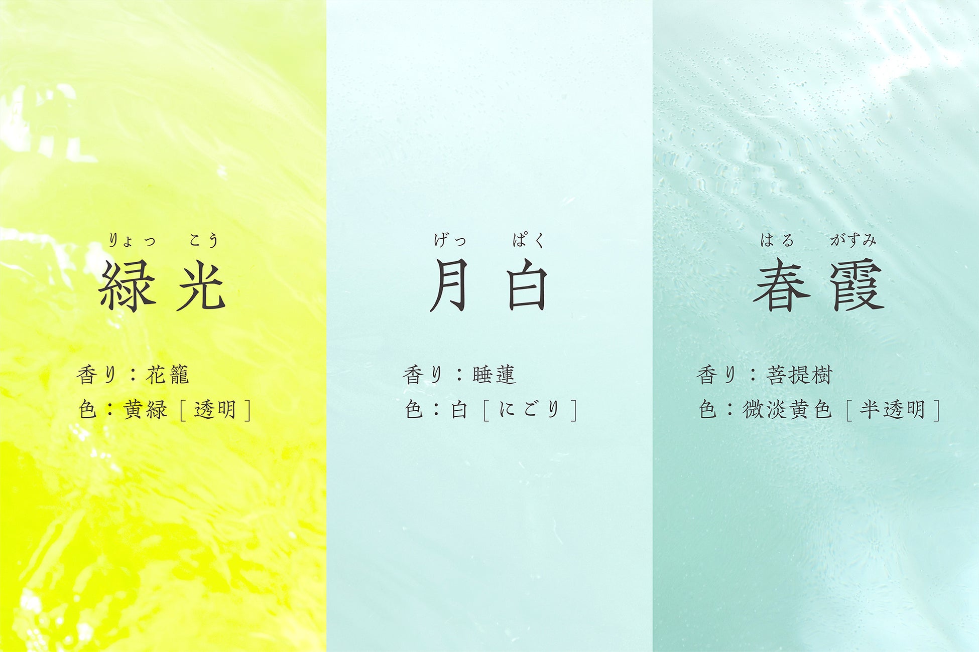 温泉の恵みである別府温泉の「湯の花」をエキスとして基剤配合した入浴剤「湯躍」は、ご自宅のお風呂で温泉気分を味わうことができ、心身ともに温まるひとときをお届けします。「湯躍 円筒詰合せ」は、3種類の色と香り(緑光、月白、春霞)が楽しめる人気商品です。