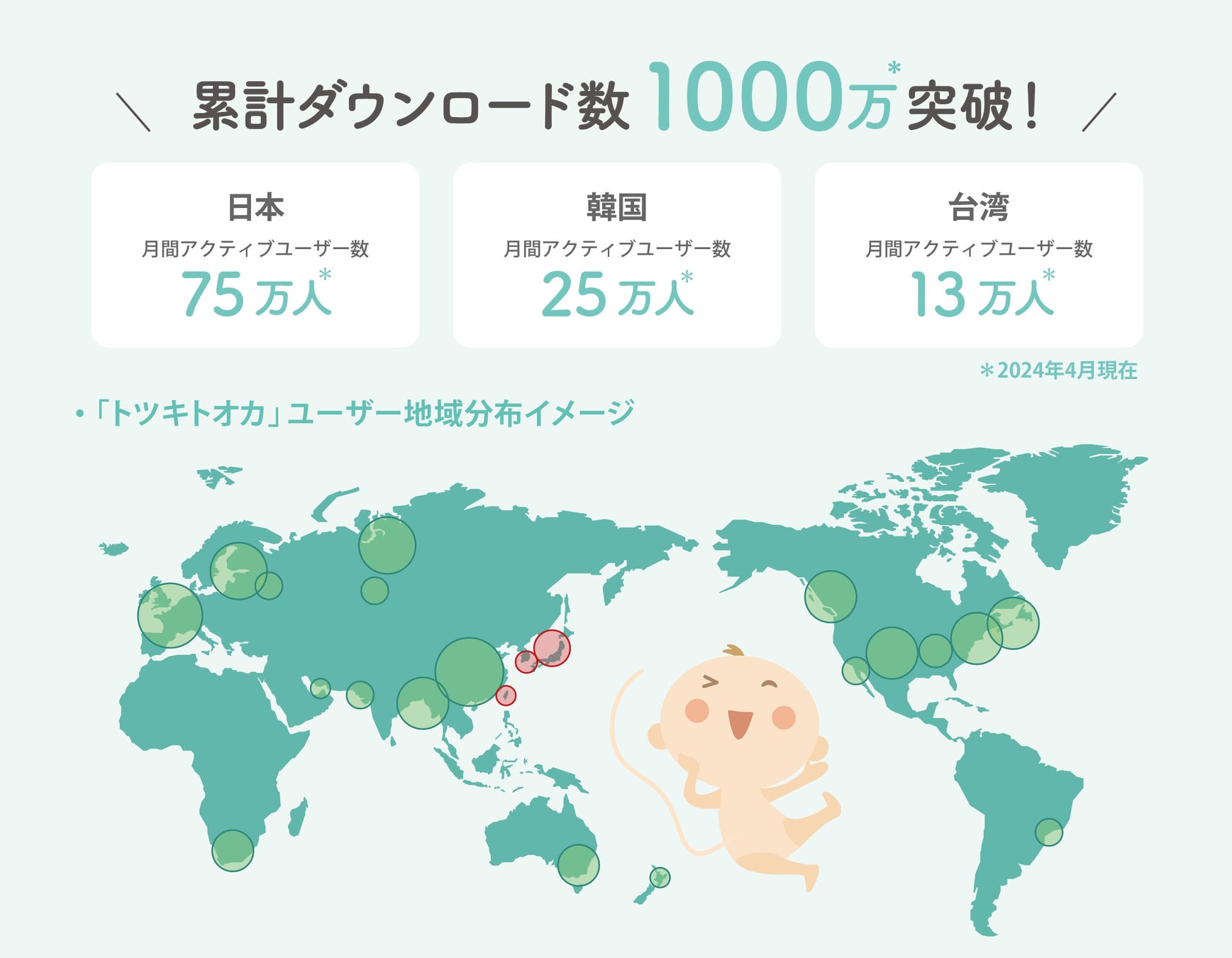 「トツキトオカ」は、総ダウンロード数約1000万件(2024年4月現在)、国内月間アクティブユーザー数約75万人(2024年4月現在)を誇る大人気の妊娠記録・日記アプリ。夫婦でアプリを連携することができ、お腹の赤ちゃんの様子やママの体調を共有しながら、 妊娠記録・日記を夫婦で一緒につくって楽しめるアプリとなっています。