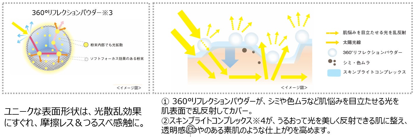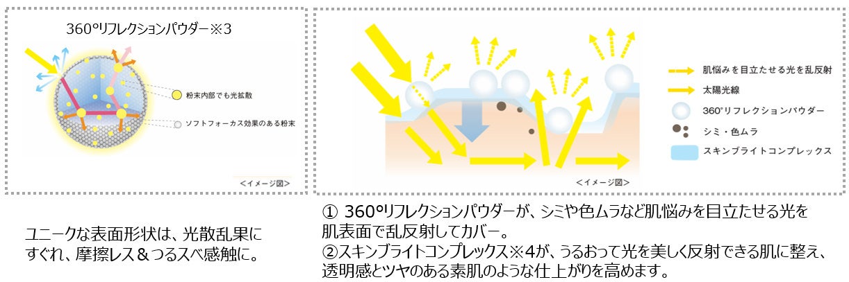素肌と一体化した極薄膜が、瞬時に悩みをカバー。メイクとスキンケア効果の融合技術により、素肌ケアしながら光を操り、明るく澄み渡る生ツヤ肌を演出。