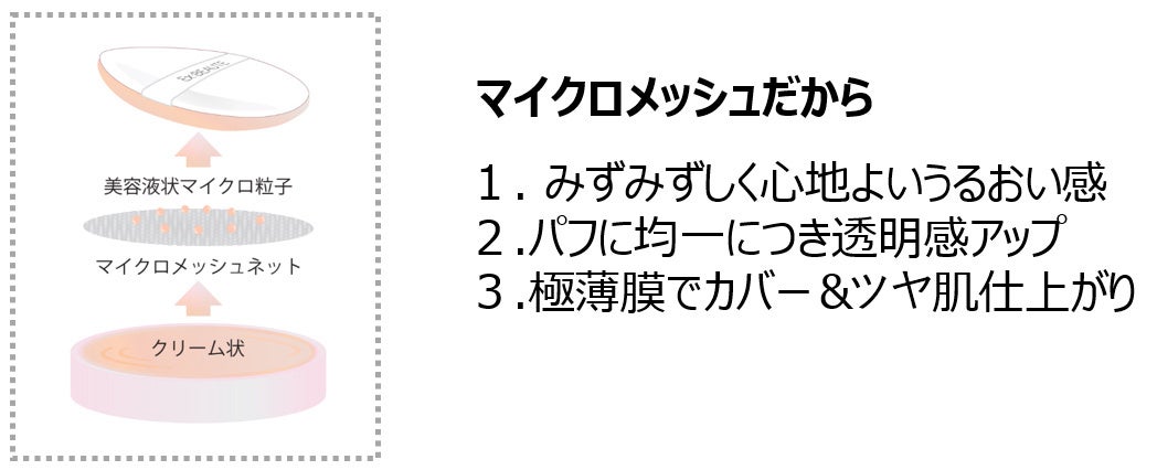 マイクロメッシュタイプ&しずく型パフ採用。ポンポンするだけ!時短で均一仕上がり