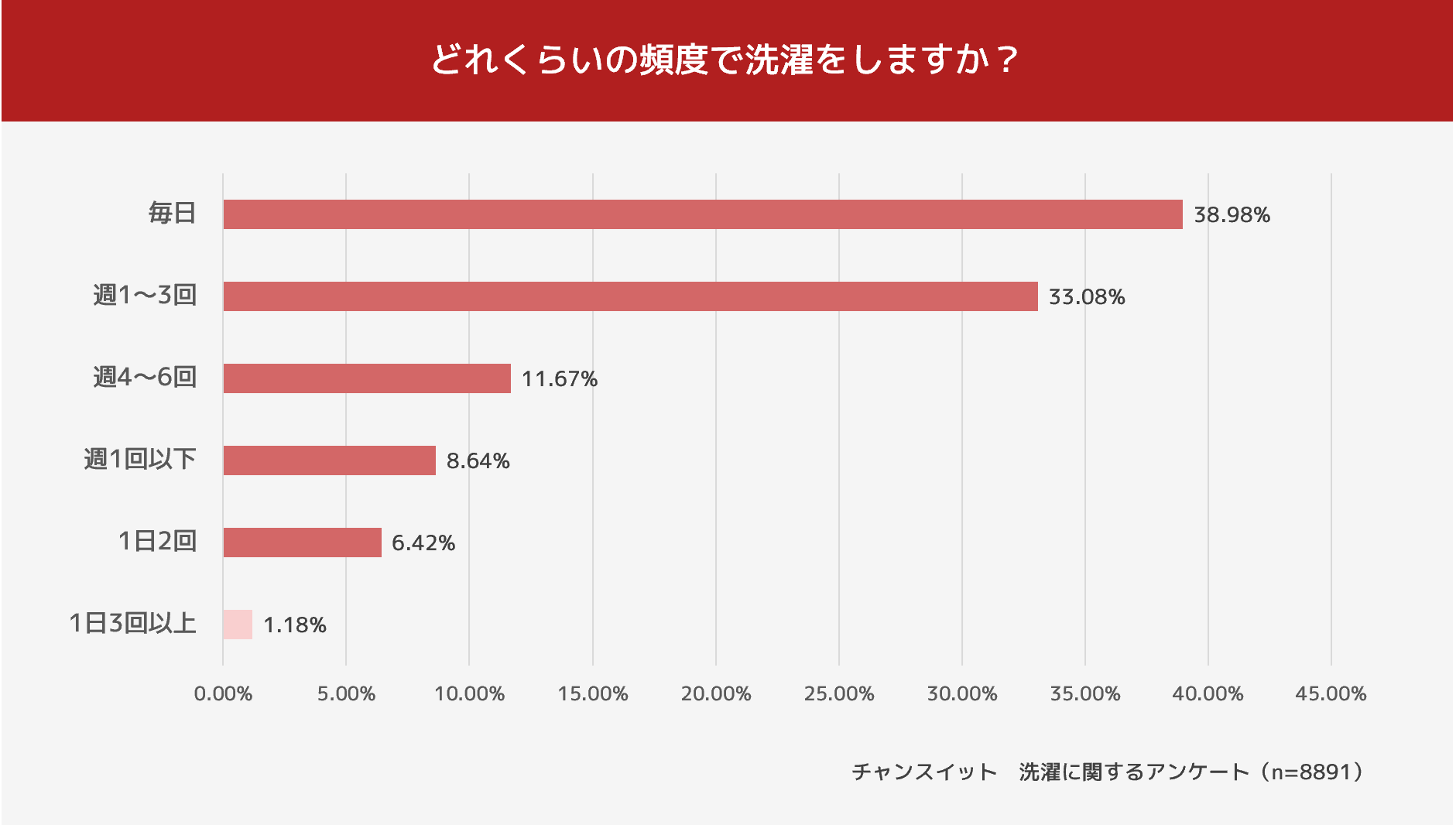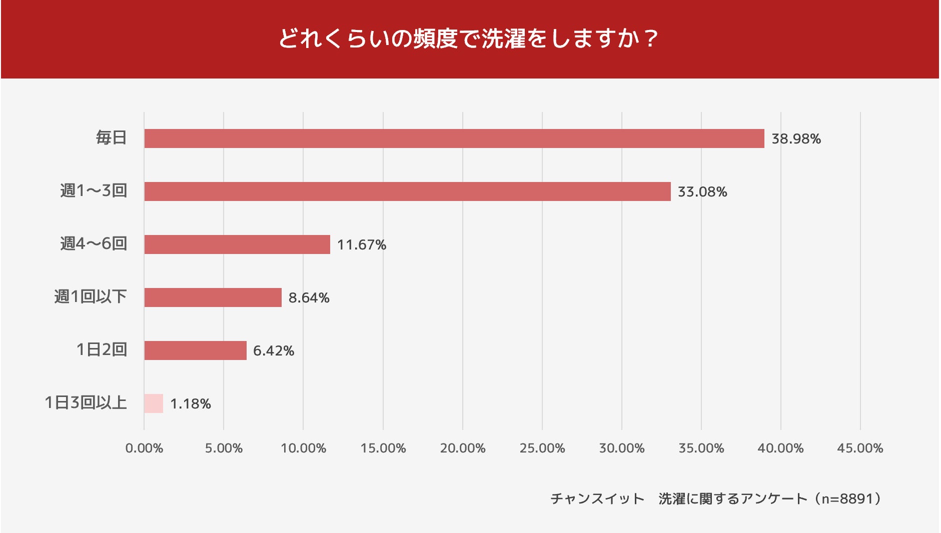 チャンスイットを利用するユーザーに対して、「どれくらいの頻度で洗濯をしますか?」というアンケートを実施したところ、