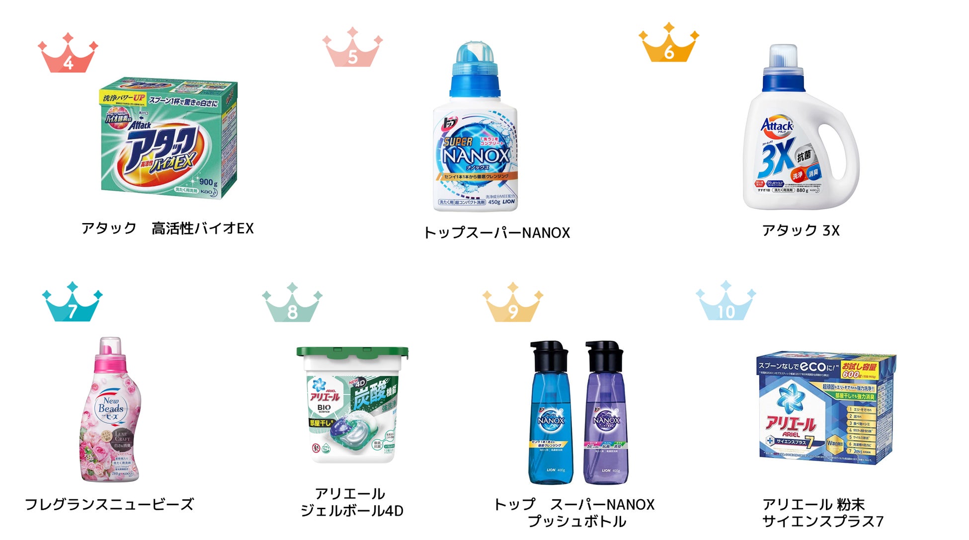 1位:「アタック 消臭 ストロング ジェル」1361票、2位:「アタック ゼロ(ZERO) 」1769票、3位「アリエール バイオサイエンス」694票という結果となり、アタックが上位2トップとなりました。