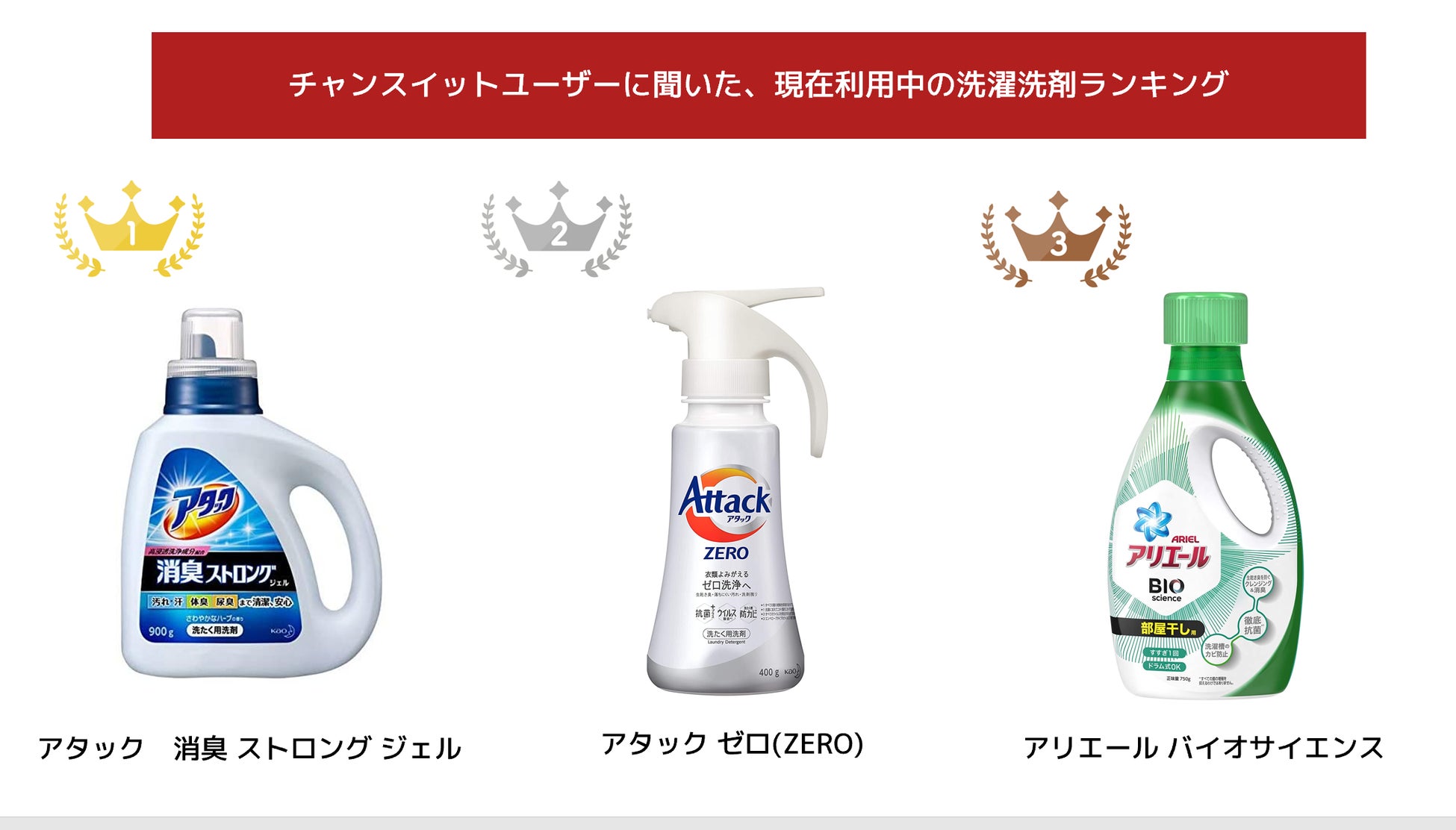 - チャンスイット会員によると、一番利用率の高いメーカーは「アタック」という結果になった