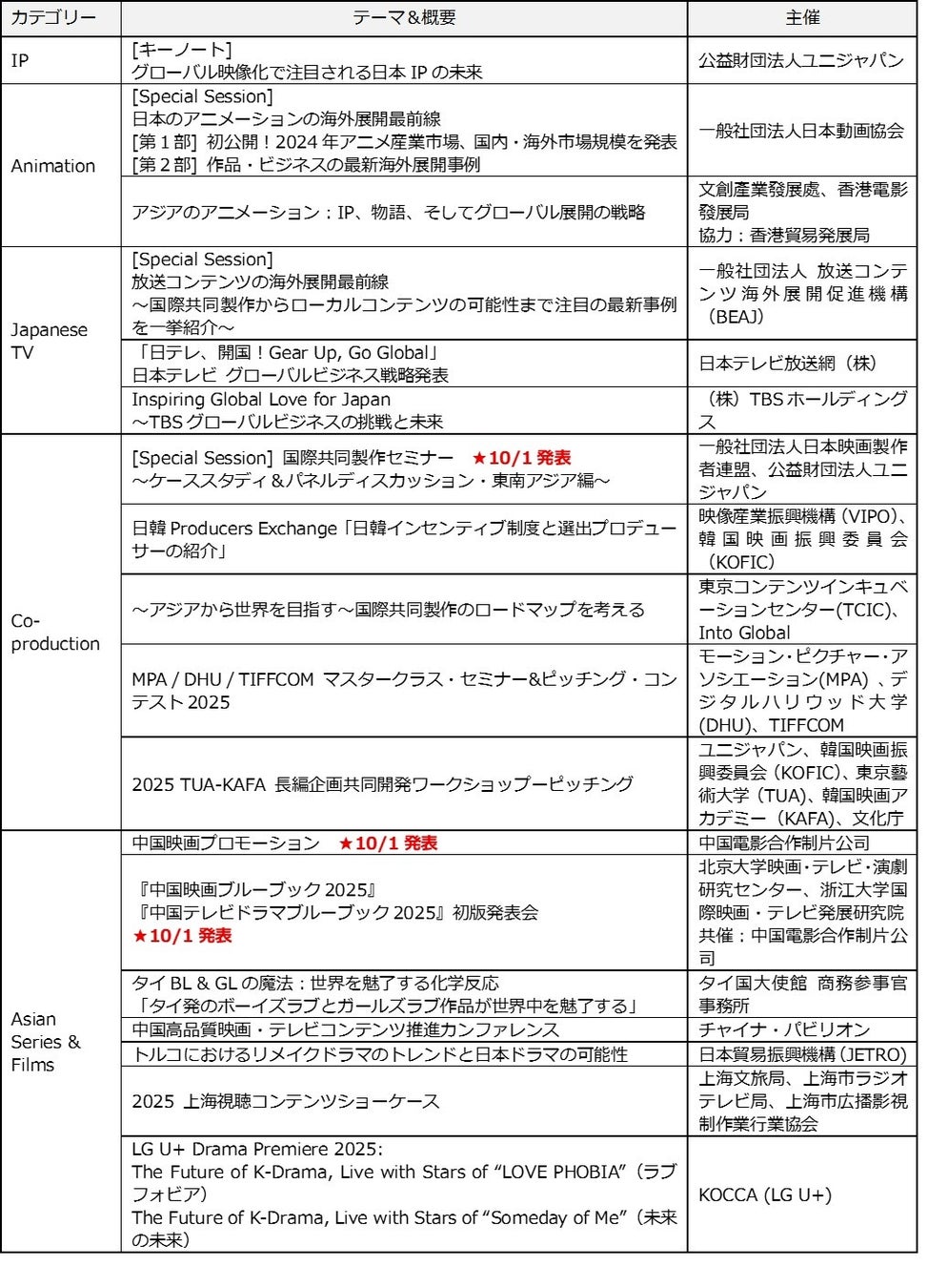 海外展開、IP戦略、国際共同製作、アジア各国の人気コンテンツなど、幅広いテーマでコンテンツ業界の未来を切り開く「TIFFCOM 2025」に、ぜひご期待ください。