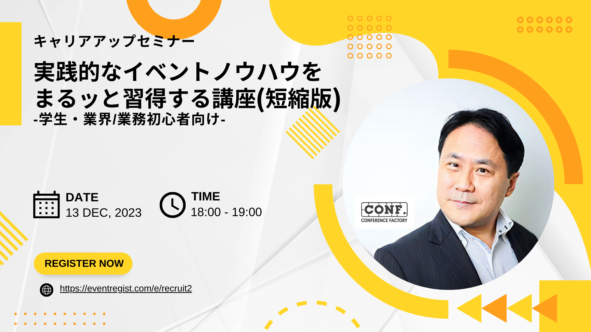 「実践的なイベントノウハウをまるッと習得する講座(短縮版) -学生・業界/業務初心者向け-」<60分>