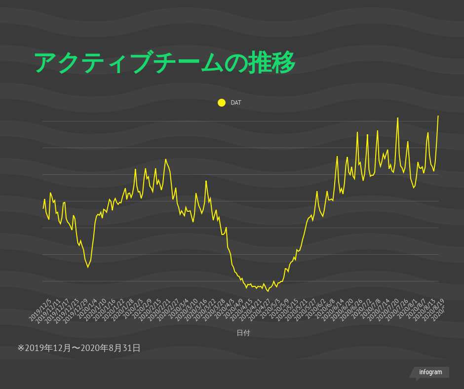 ■感染拡大期と外出自粛に伴い、アクティブチーム数が下降