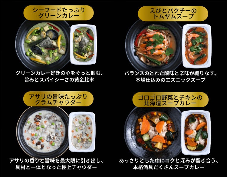 あたためるだけで完成し、おうちではなかなか再現しづらい本格的なスープとリゾットを堪能できます。