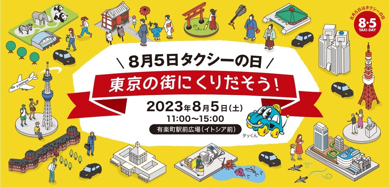 わが国で最初にタクシーが誕生したのは1912年(大正元年)8月5日。これを記念して、毎年8月5日を「タクシーの日」と制定しています。今回の「タクシーの日」イベントは、有楽町駅前広場にて「8月5日 タクシーの日 東京の街にくりだそう!」と題して開催。一行タクシー車両や日本機械学会の機械遺産にも登録された1947(昭和22)年発売の、「東京電気自動車」(のちのプリンス自動車工業)による電気自動車などの車両展示。その他、様々なイベントを開催いたします。タクシーの日イベント詳細:https://www.taxi-tokyo.or.jp/event2023/