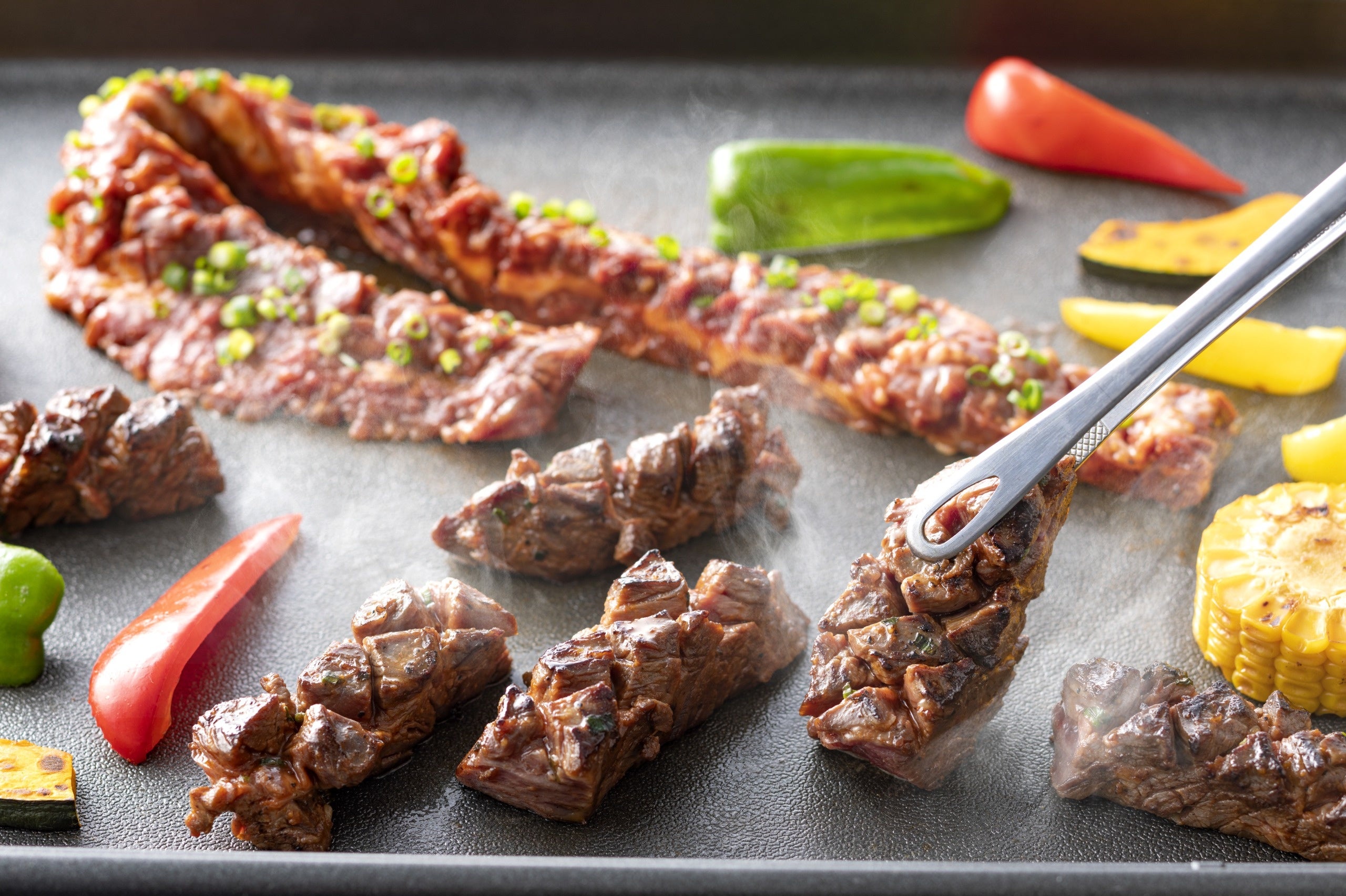 こだわりのヤンニョムをベースにリンゴやレモンなどの果実やハチミツを加えコクのある優しい甘さのタレで、ジューシーな脂のコクと赤身の旨みが両方味わえる牛バラカルビに味付けしました。つけダレ不要で、焼くだけで美味しく召し上がっていただけます。