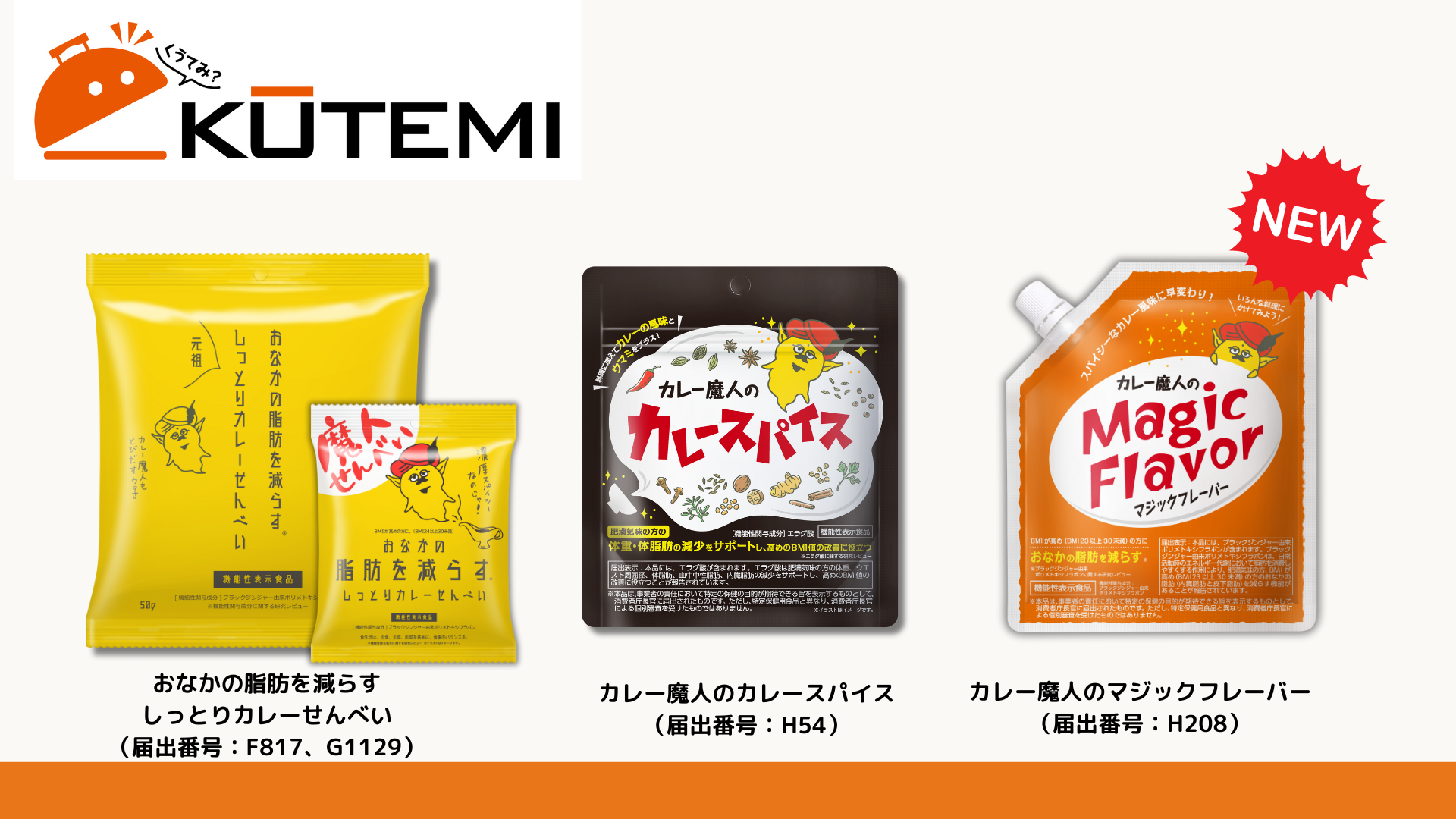 「おなかの脂肪を減らすしっとりカレーせんべい」を販売するKŪTEMIシリーズは、「罪悪感をなくす」をテーマに、おいしいものを食べて健康をサポートする商品展開し、ご好評をいただいています。