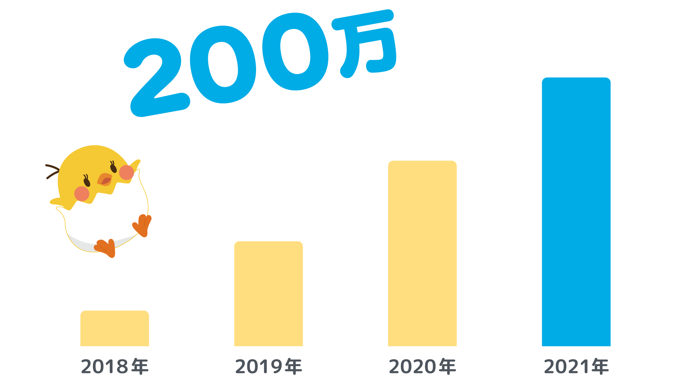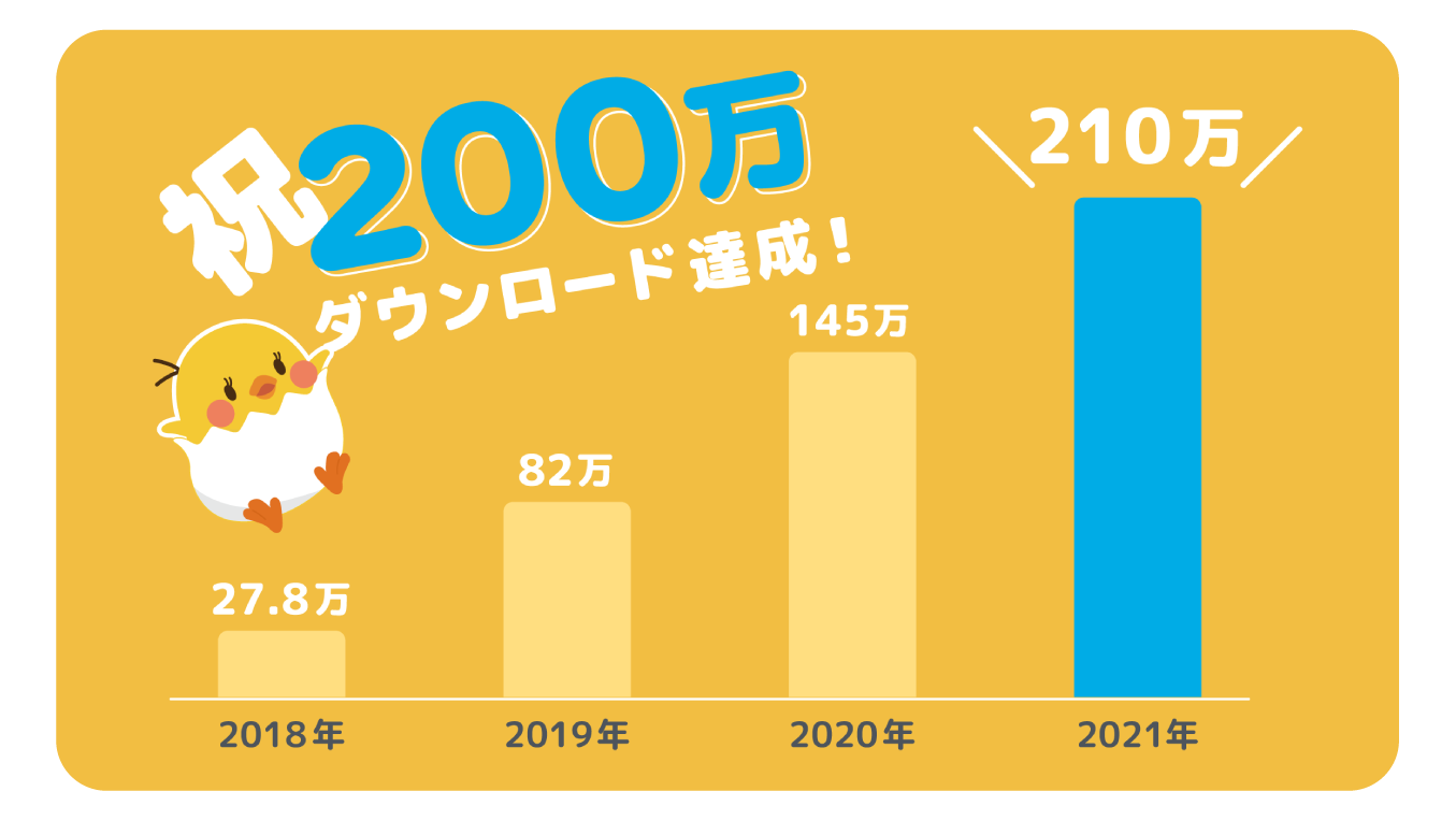 おかげさまで「ぴよログ」は2021年の時点で200万ダウンロードを達成いたしました!今ではSNSを含め口コミでもぴよログをご紹介いただく機会が増え、多くの方にご利用いただけるアプリへと成長することができたました。