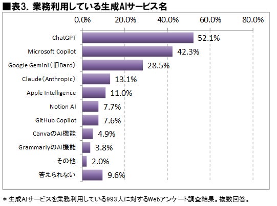 ■ ChatGPTの利用率は52.1%で最多、Copilot・Geminiも4割前後の利用率