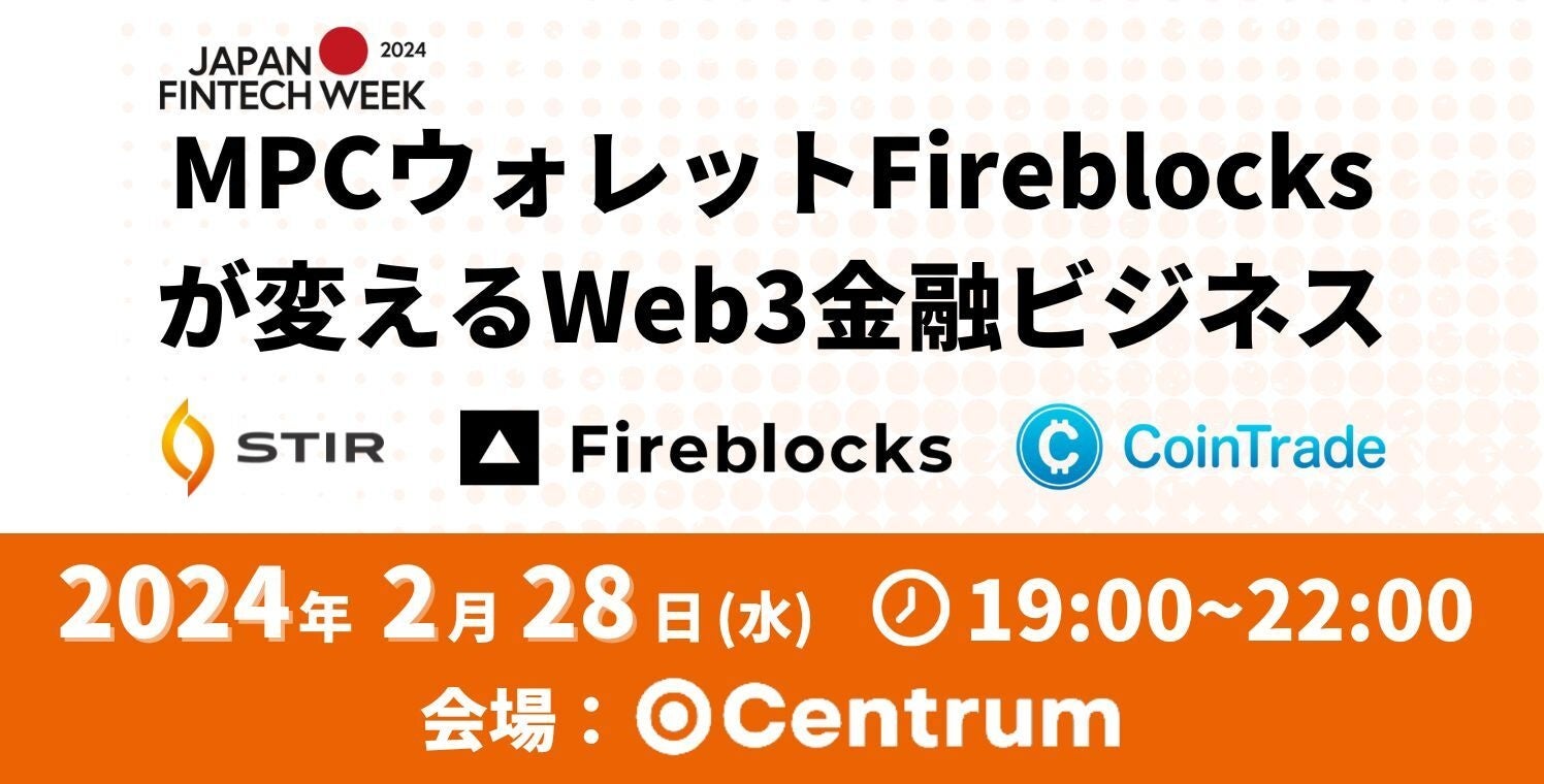 今回の発表を記念し、2月28日(水)にFireblocks・マーキュリーと共同でMeetup「MPCウォレットFireblocksが変えるWeb3金融ビジネス」(会場:Centrum)を開催します。このMeetupは、本年より金融庁が開催する「Japan Fintech Week 2024」のサイドイベントです。