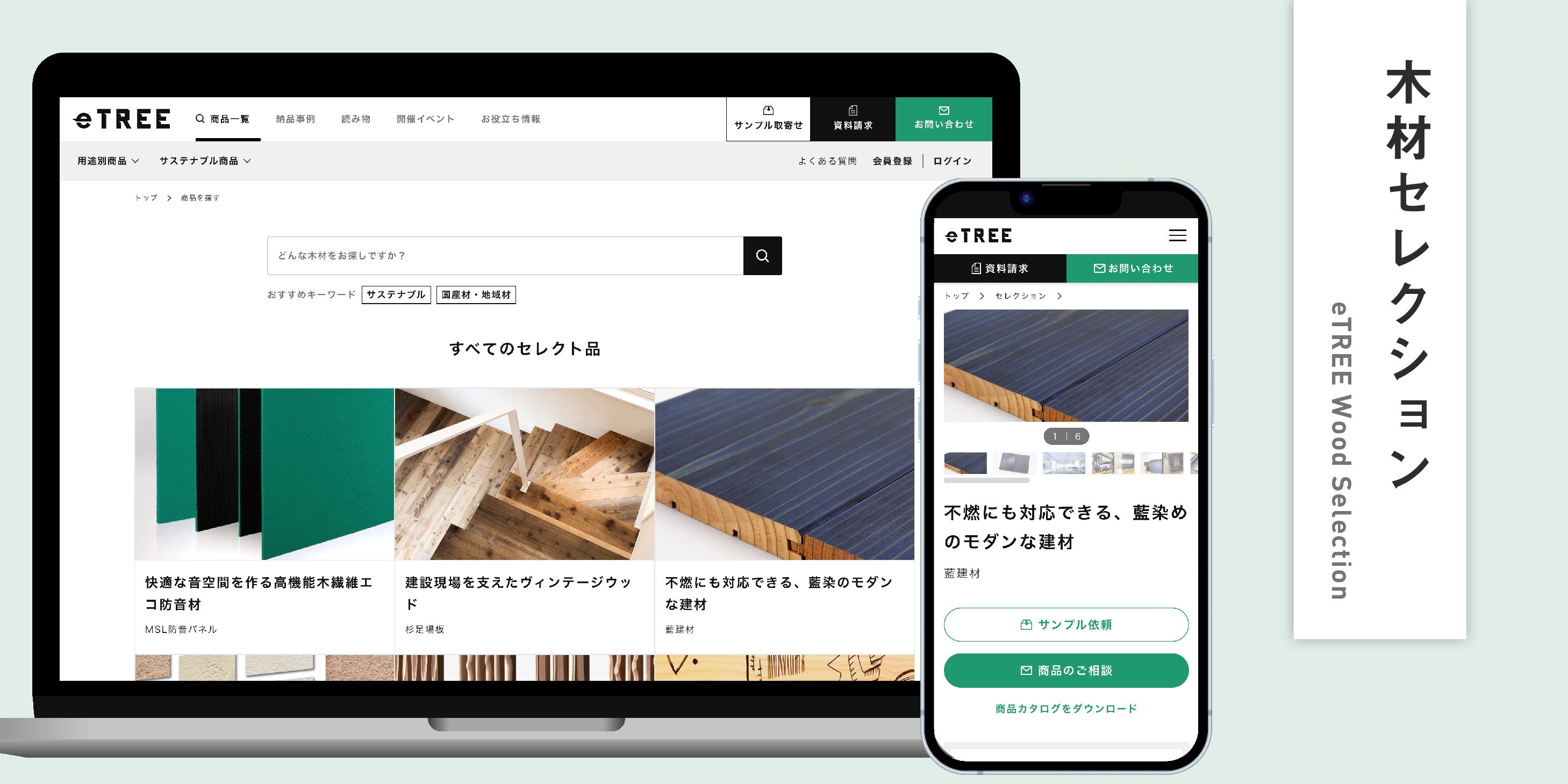 “eTREE”は設計者・デザイナー・建設事業者様向けの、BtoB木材プラットフォームです。全国各地の木材メーカーの商品情報や、補助金情報、林業・木材業のイベント等を取り扱っております。