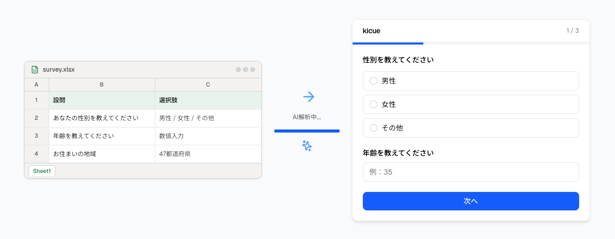調査票をアップロードするだけでAIがWebアンケートを自動生成するアンケートシステム「Kicue(ききゅう)」を正式リリース