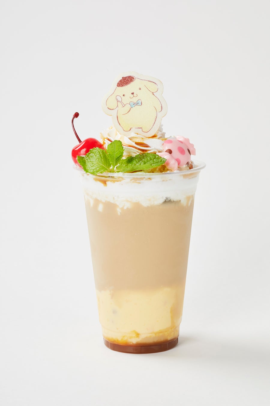 ポムポムプリンの大好きなプリンを使ったキャラメルラテ。