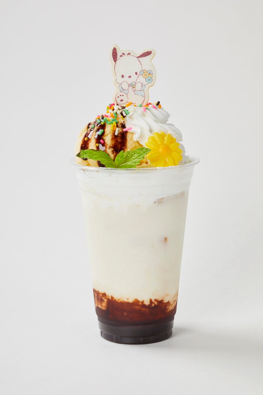 ポチャッコの大好物、バナナアイスがのったバナナジュースと相性のよいチョコをトッピングしました。