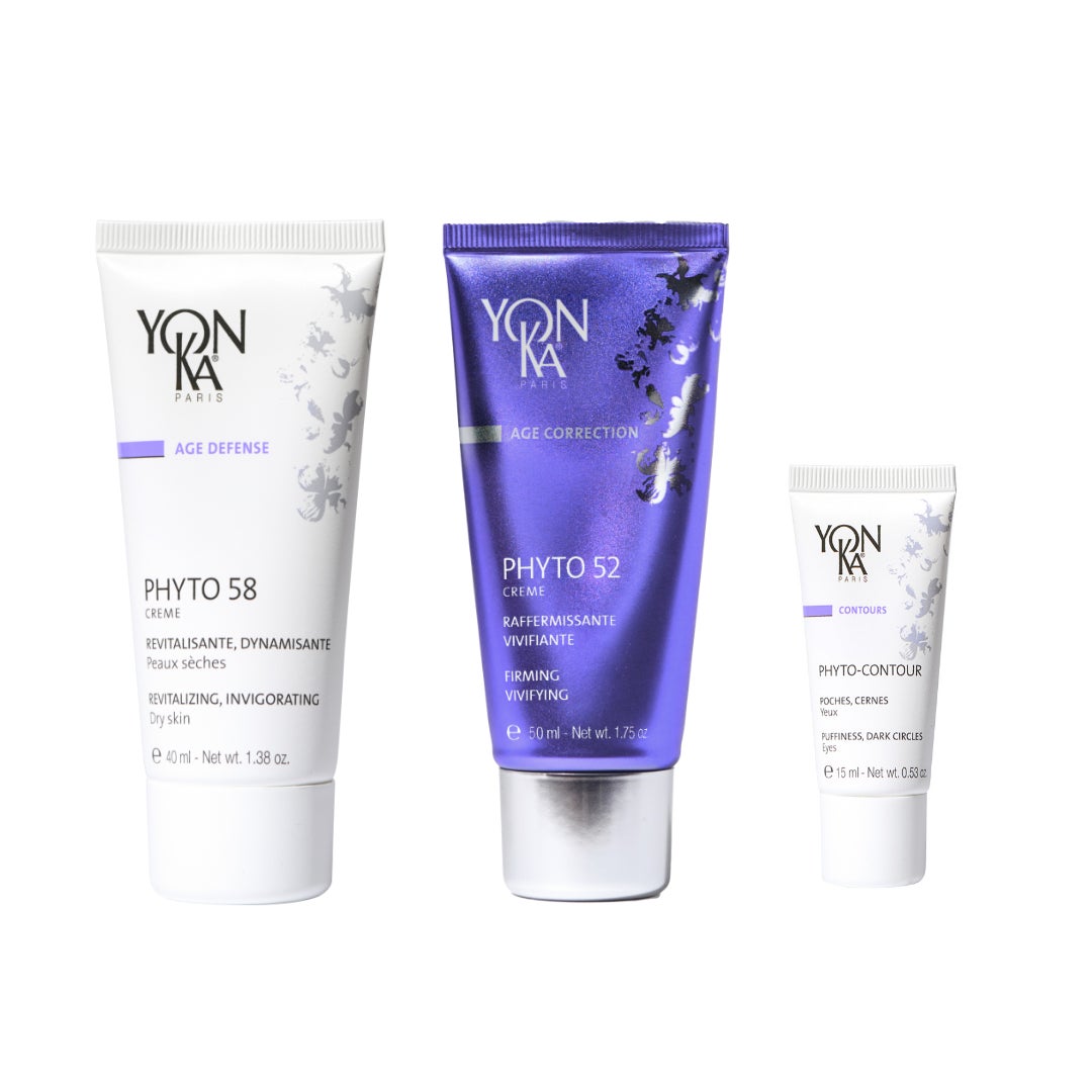 若返りのハーブと呼ばれるローズマリー配合。「フィト58」は乾燥によるくすみを防ぎ、輝きのあるふっくらとした肌に導くフェイスクリーム。「フィト52」はフェイスラインや肌の荒さが気になる部分やキメを引き締め整えます。「フィトコントゥール」は気になる目元を引き締め、輝きのある印象に。