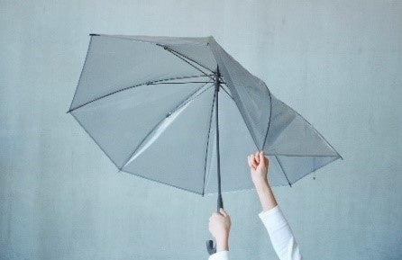 骨部分は、伸縮性や耐久性に優れた壊れにくい強化プラスチックを使用しています。強い風もぐにゃりと曲がってしなやかに受け止め、折れにくい仕様です。ハンドルやシャフト、骨、石突まで全てがオールプラスチックであり、金属を一切使用していないため錆びる心配がありません。※一般財団法人日本文化用品安全試験所による「風に強い傘製品性能基準」に基づく試験により、風速15m/sのテストをクリア