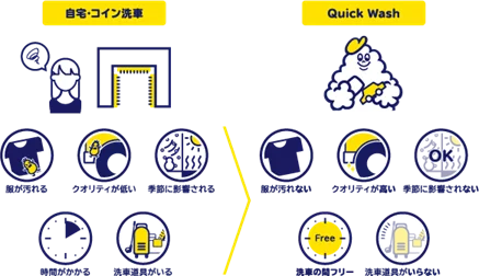 この1〜2時間の洗車にかかる時間を「時給換算」すると、実際にはクイックウォッシュを利用する場合と同じと判断されるお客様が増えています。
