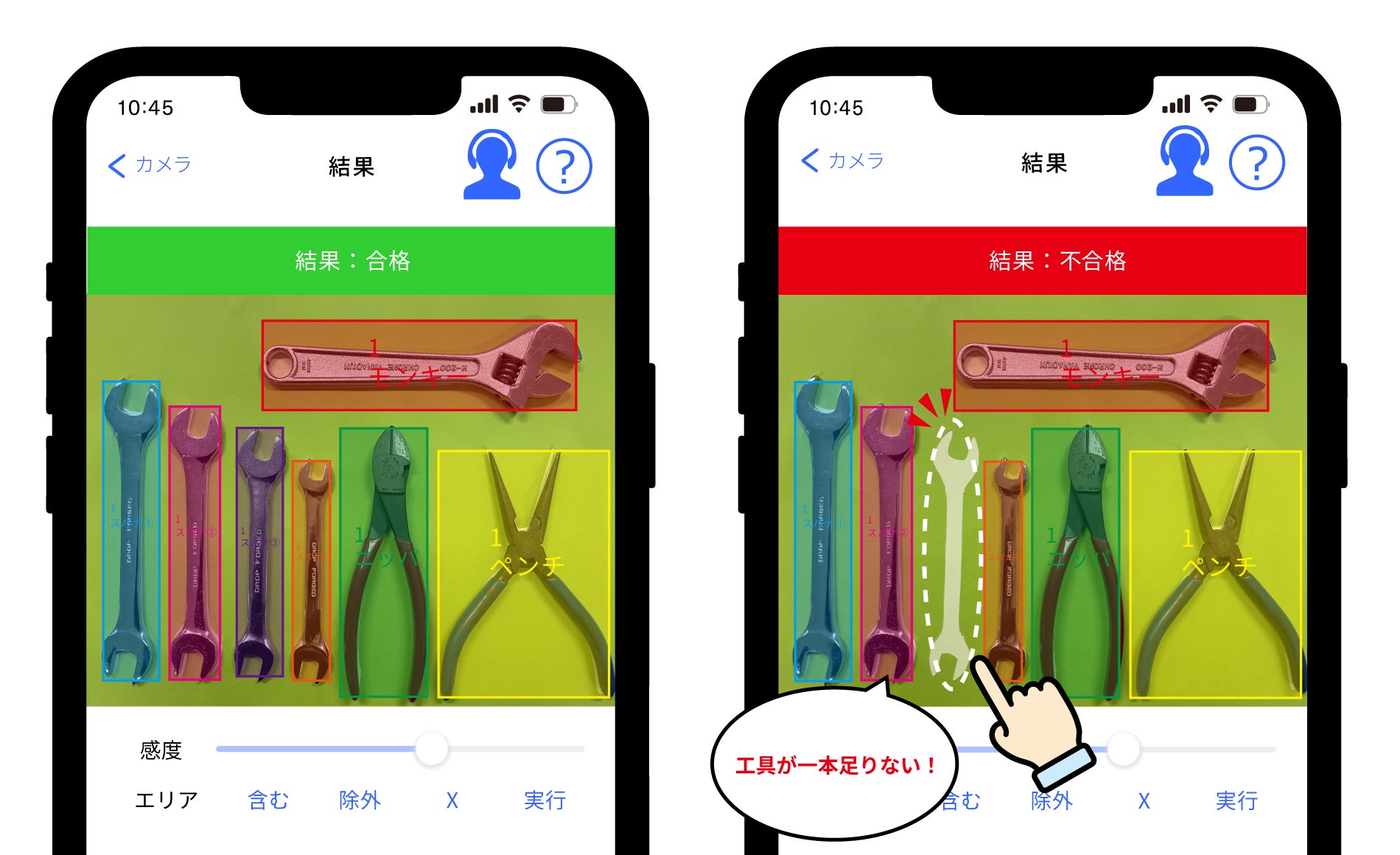 『各部品3個で合格』『1種類欠品しているから不合格』など合否判定ができる為、在庫管理や欠品検査の作業効率が上がります。合否判定はカウント結果として表示されます。