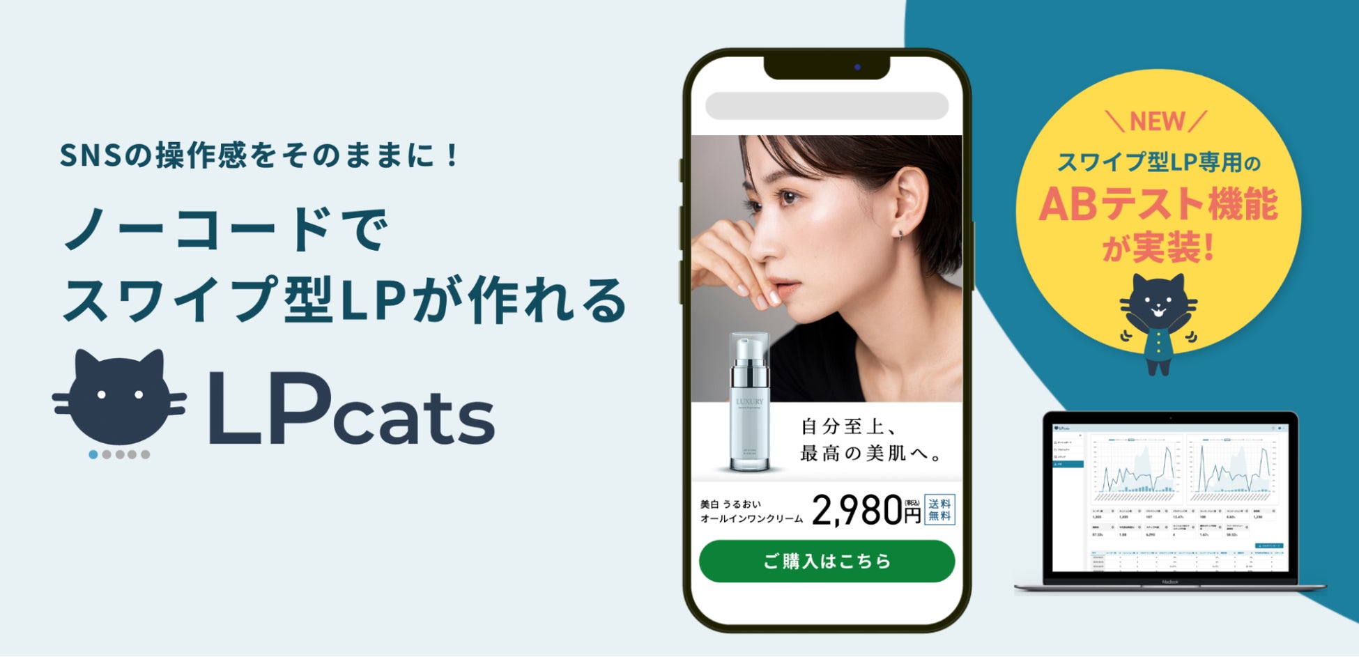 2025年大ヒット間違いなし!スワイプ型LPが簡単に作れる「LPcats」にABテスト機能が実装!