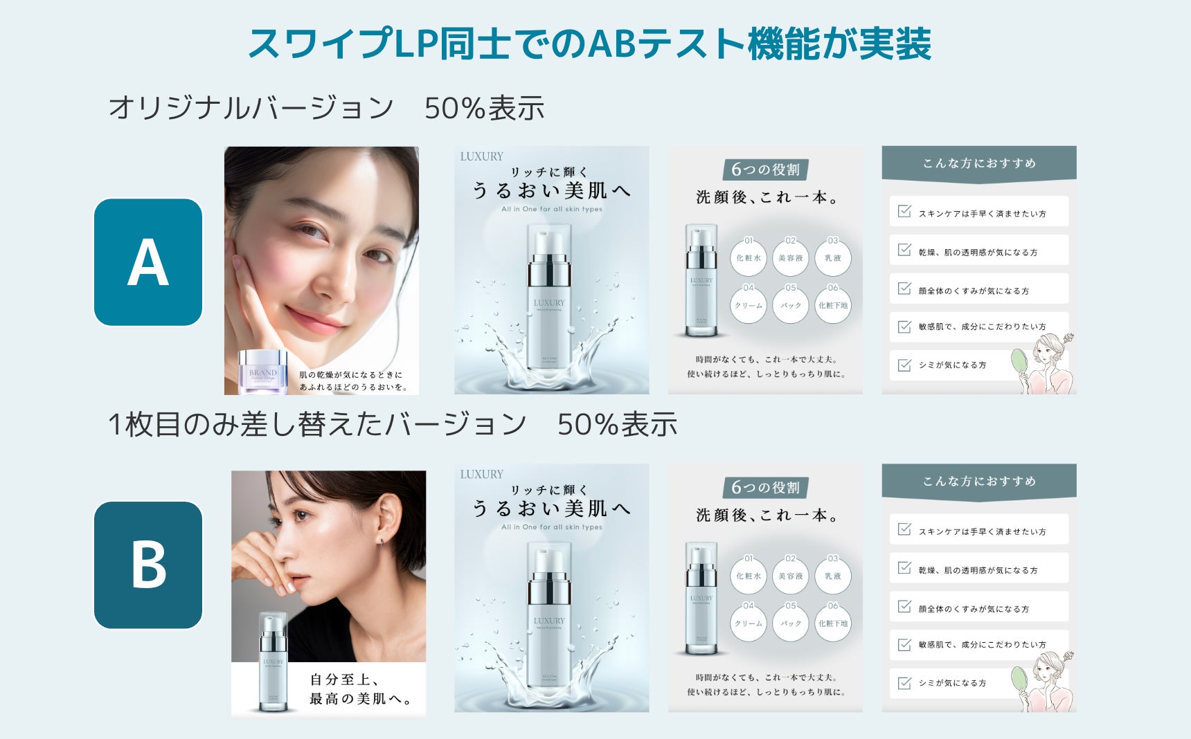 この度、多くの利用者のご要望にお応えして、スワイプ型LP専用のABテスト機能が実装されました。