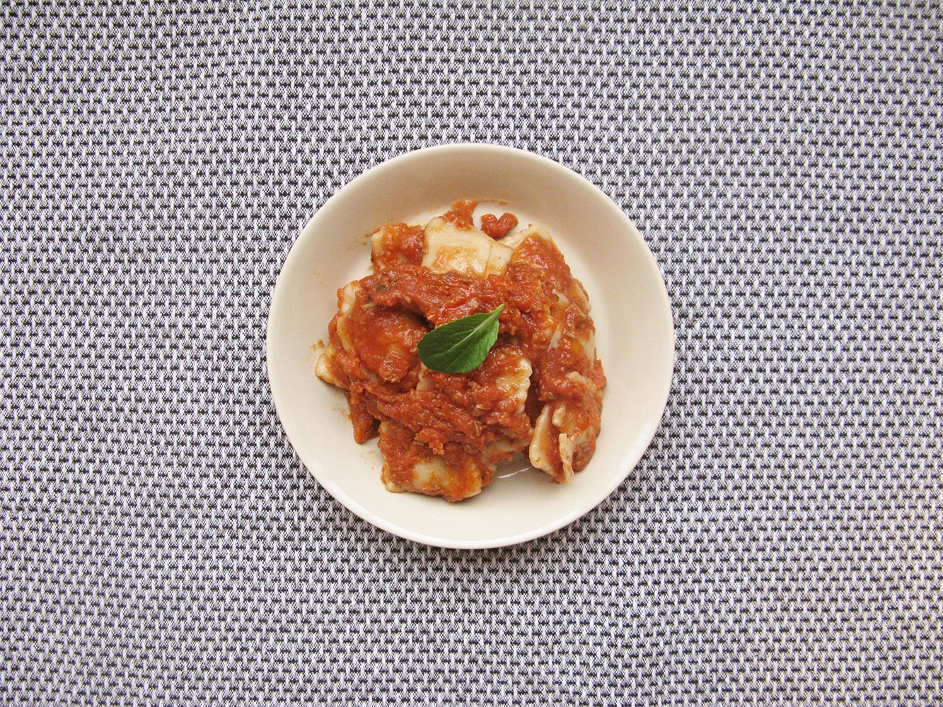 ミニラビオリにチーズ入りのトマトソースがかかり、食べ応えのあるパスタです。
