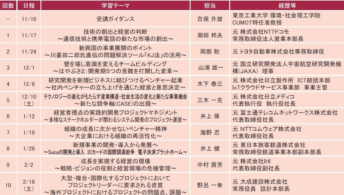 東京工業大学 社会人向けMOT(技術経営)コース「経営経験者との対話で学ぶ技術経営セミナー ~CUMOT×STAMP 連携プログラム~(全10回)」が11月に開講!
