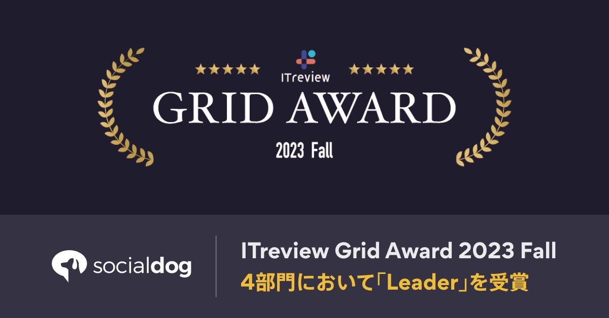SNSアカウント管理ツール「SocialDog」、「ITreview Grid Award 2023 Fall」の4部門において「Leader」を受賞
