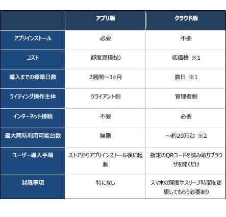 アプリ版と比較し、よりお手頃価格で提供できるようになりました。また導入決定から数日で専用アカウントが発行されスピーディな導入が実現できます。
