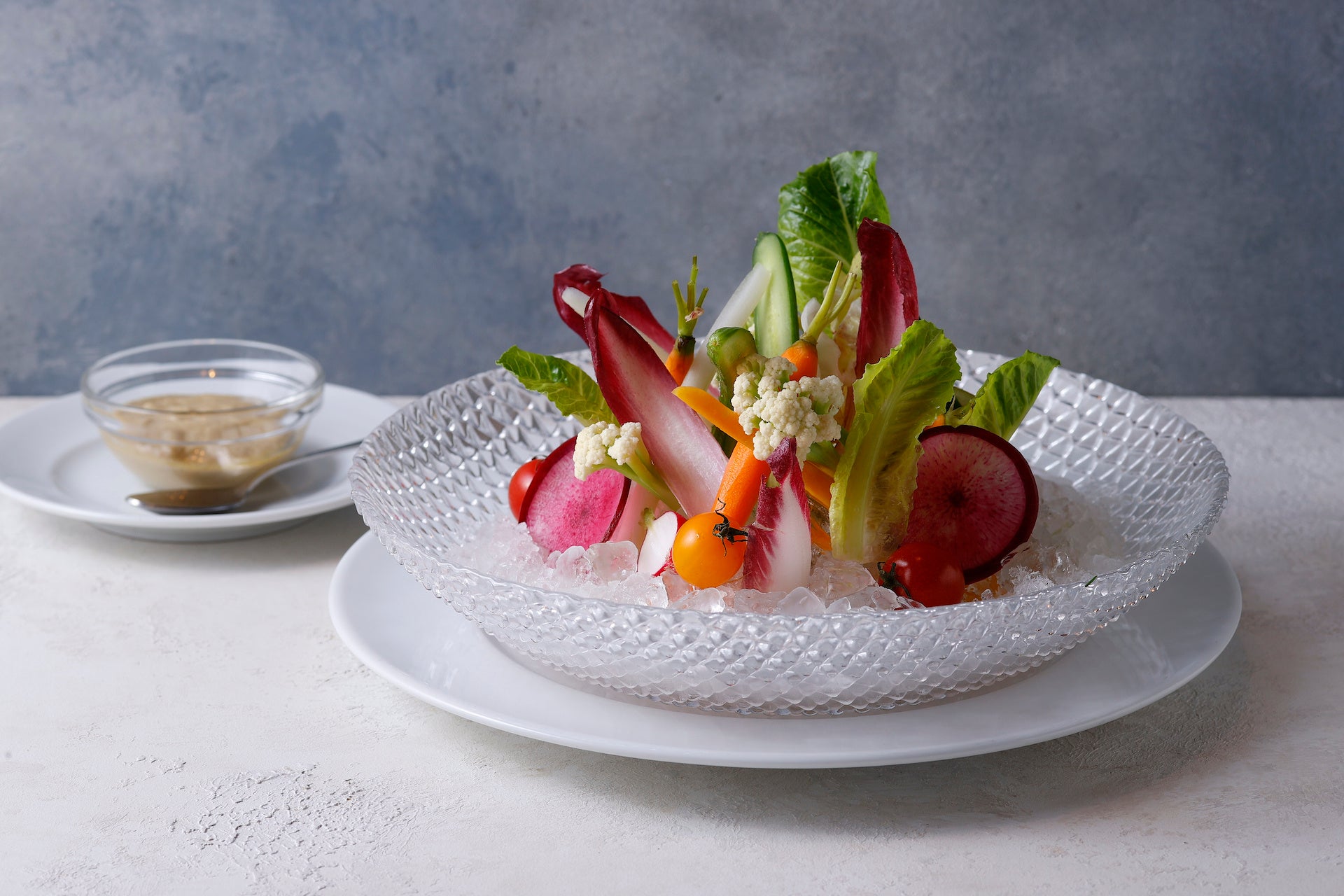 女性に大人気のバーニャカウダ。彩り美しい冬の根菜をメインにご用意いたしました。みずみずしい冬の根菜に、青森県産ニンニクとアンチョビを贅沢に使ったバーニャカウダソースを、たっぷりとつけてお召し上がりください。