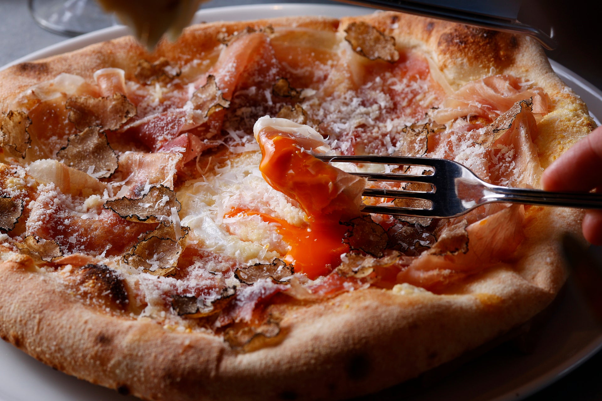 イタリアでは、生ハム、チーズ、卵を使ったビスマルクは定番ピザの1つ。「IL LUPINO PRIME/イル・ルピーノ・プライム」では、卵と相性の良いトリュフを贅沢に加えました。もちもちで柔らかいピザ生地を、とろっと美しい卵に絡めてお召し上がりください。