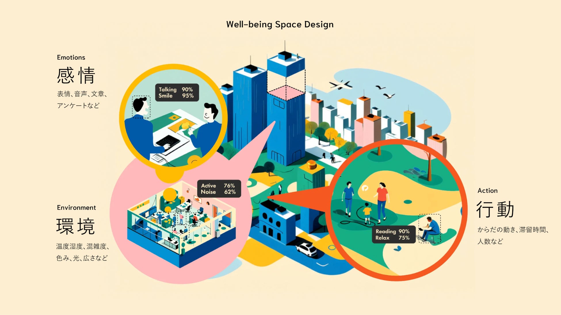 ~ 独自の「ウェルビーイングばらし(要素分解)」により空間価値を要因分析・可視化し、介入施策提案する生成AIソリューションを共同開発スタート、共創パートナーを募集します ~
