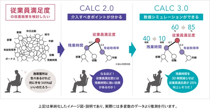 *CALCは株式会社ソニーコンピュータサイエンス研究所(ソニーCSL)が開発した技術で、株式会社電通総研、ソニーCSL、クウジットの3社による業務提携に基づき提供されています。