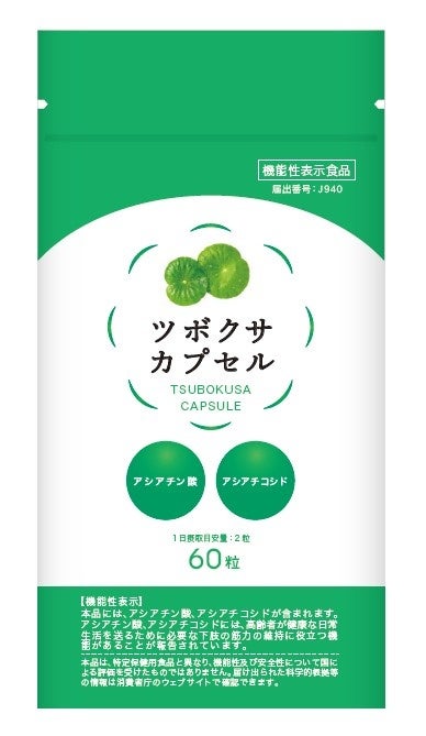「本品には、アシアチン酸、アシアチコシドが含まれます。アシアチン酸、アシアチコシドには、高齢者が健康的な日常生活を送るために必要な下肢の筋力の維持に役立つ機能があることが報告されています。」