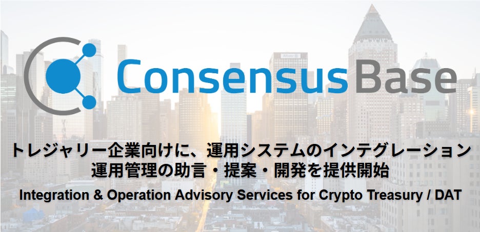 ブロックチェーン/Web3のコンサル・開発を手掛けるコンセンサス・ベイス株式会社(本社:東京、代表:志茂 博)は、暗号資産を保有する企業(トレジャリー企業/DAT)向けに、運用システムのインテグレーションおよび運用管理の助言・提案・開発を提供開始いたしました。