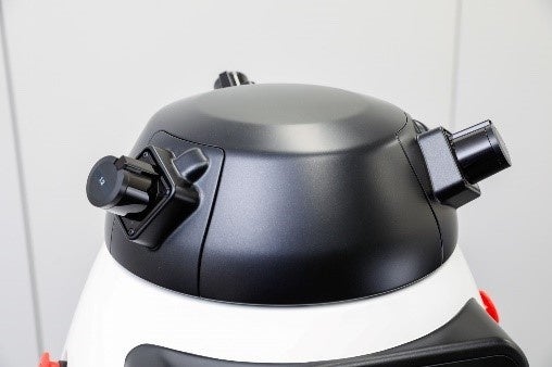 ▲使用したサービスロボット 左から2枚目はロボット荷台、3枚目はロボット頭部センサー部