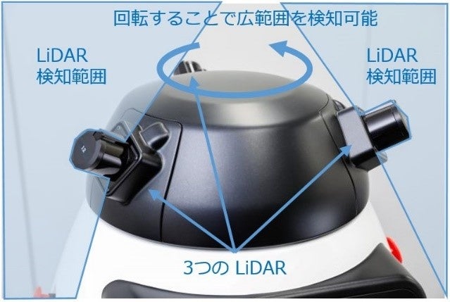 ※3. LiDARと呼ばれるセンサー3つを頭部に配置し、それを回転させることで一般的なLiDARよりも広い範囲を検知し、3D地図を作成、高い自己位置推定精度と障害物回避性能を実現