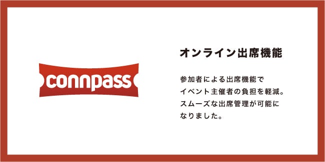 イベント毎に発行された「出席コード」を、イベント管理者が参加申し込みをした参加者に通知・提示を行い、イベント出席の際に「出席コード」を所定のリンクより入力する事で、参加者が出席情報の登録を行えます。