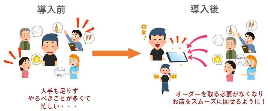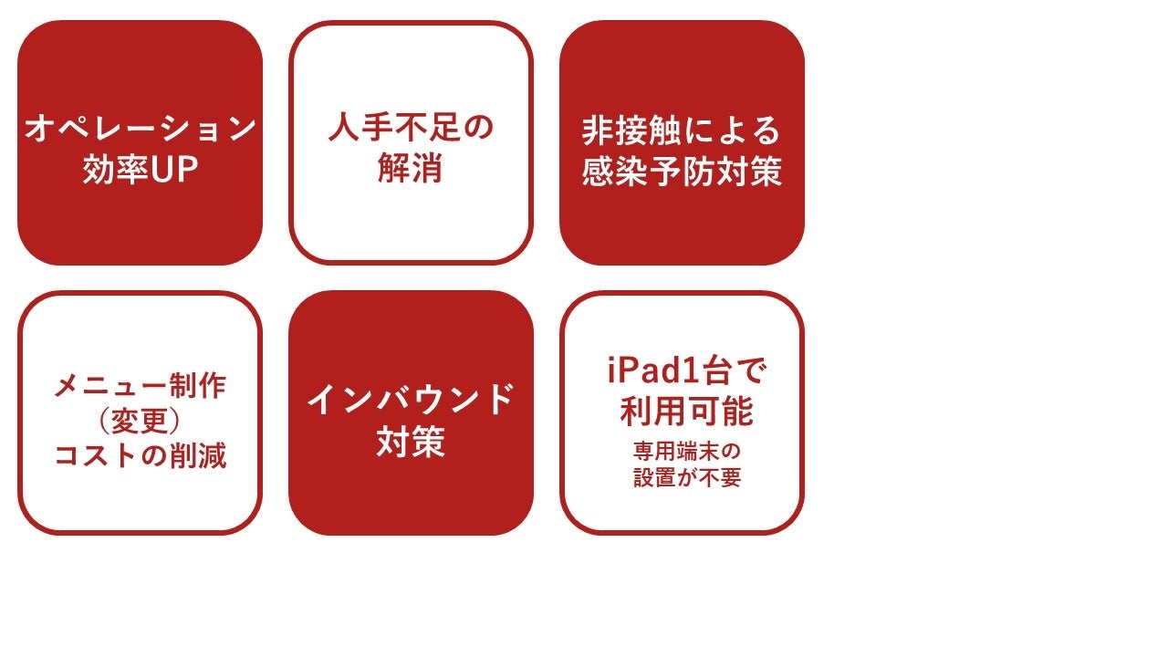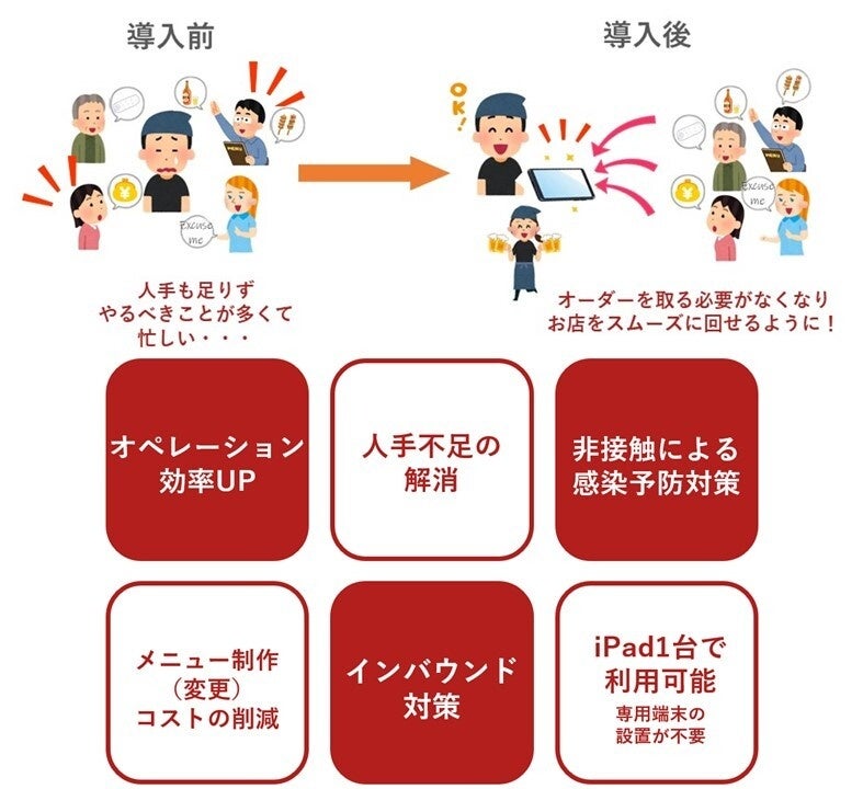 未だ続くコロナ禍において、お客様との接触機会を軽減させることによる感染症対策と、注文業務の省力化による人手不足の解消や、コスト削減、繁忙時のオーダーミスやオーダーロスの解消を同時に実現いたします。