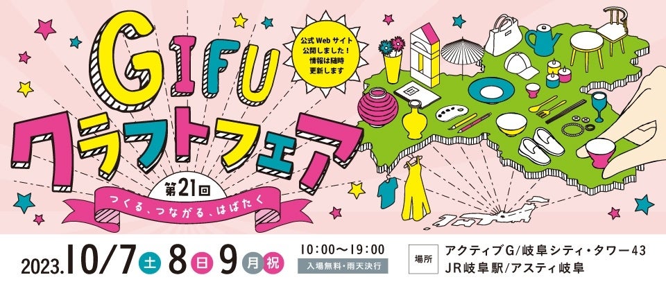 アクティブG(岐阜県岐阜市)などJR岐阜駅周辺施設では、10月7日(土)・8日(日)・9日(月・祝)の3日間、「第21回 GIFUクラフトフェア」を開催いたします。今年は「つくる、つながる、はばたく」をテーマに、全国から137組のクラフト作家が参加。岐阜県の伝統工芸やモノづくりが羽ばたくきっかけとなるような企画を多数予定しています。